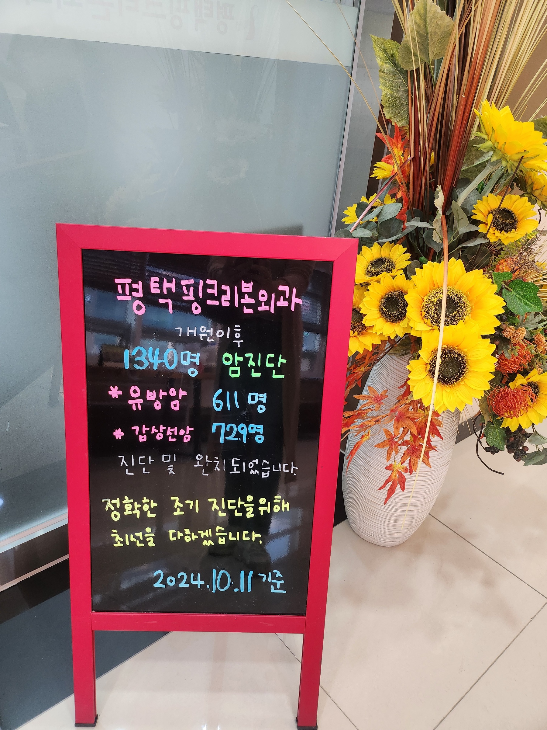 타 병원에서 8월 말에 검사를 해 결과를 보고 9월에 핑크리본에 전화를 하였으나 10월 초에 다시 전화해서 예약변경이나 취소한 자리를 예약할 수 있다 하여 10월 1일 아침 일찍 전화해서 16일 4시 50분으로 예약이 되었다.
