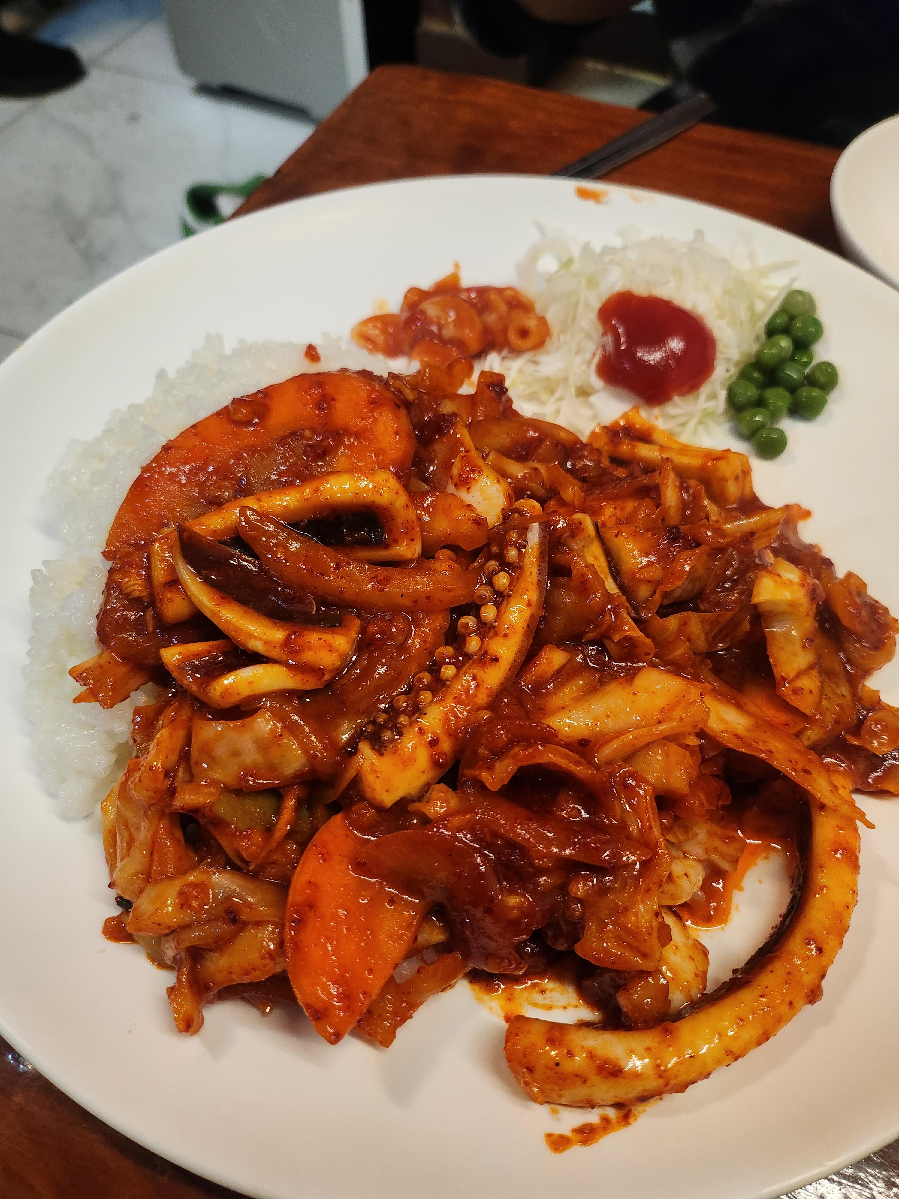 오징어덮밥 7,000원 짭짤해서 밥이 더 필요했는데, 배가 불러서 양념을 조금 남겼네요.
