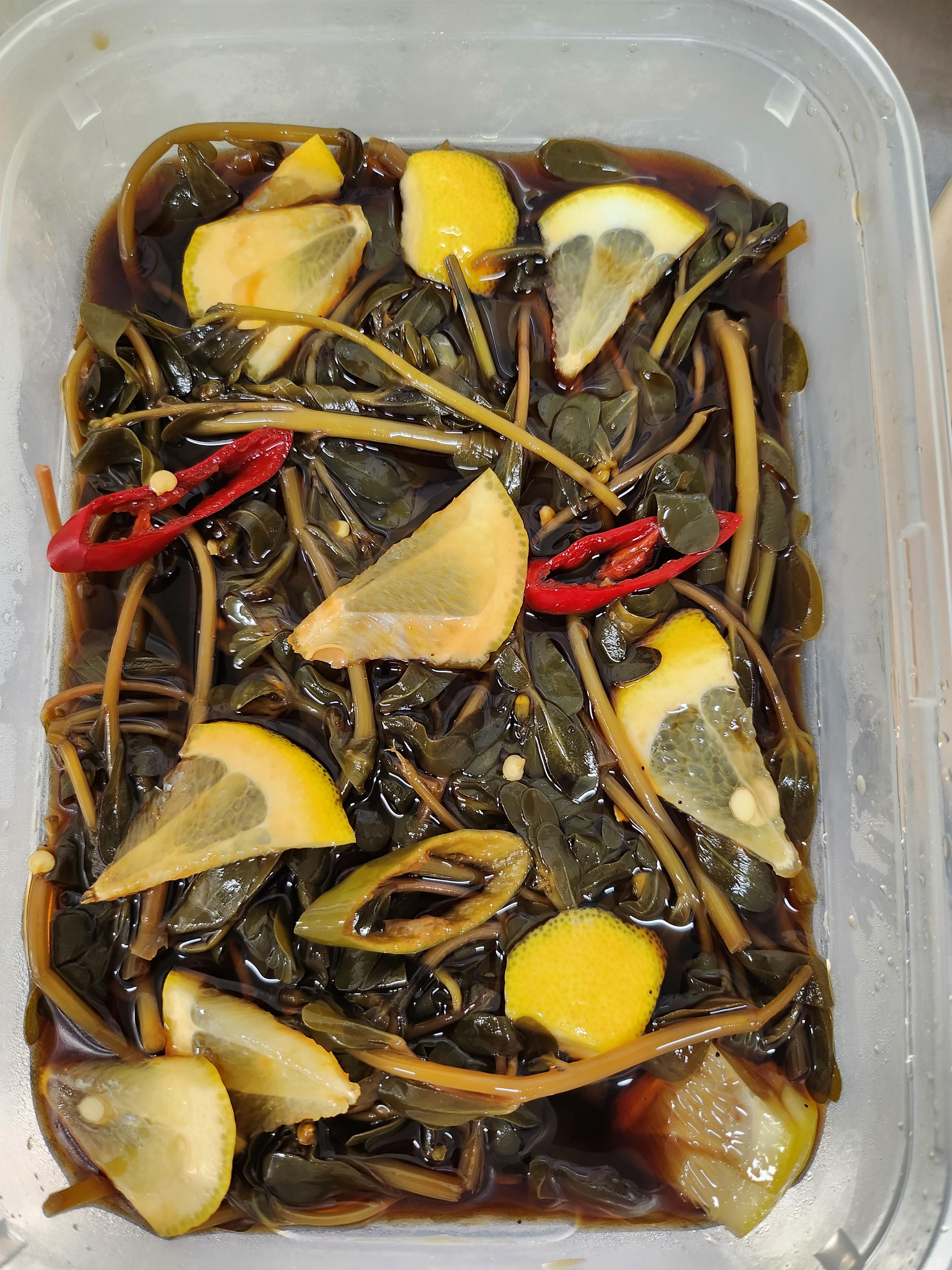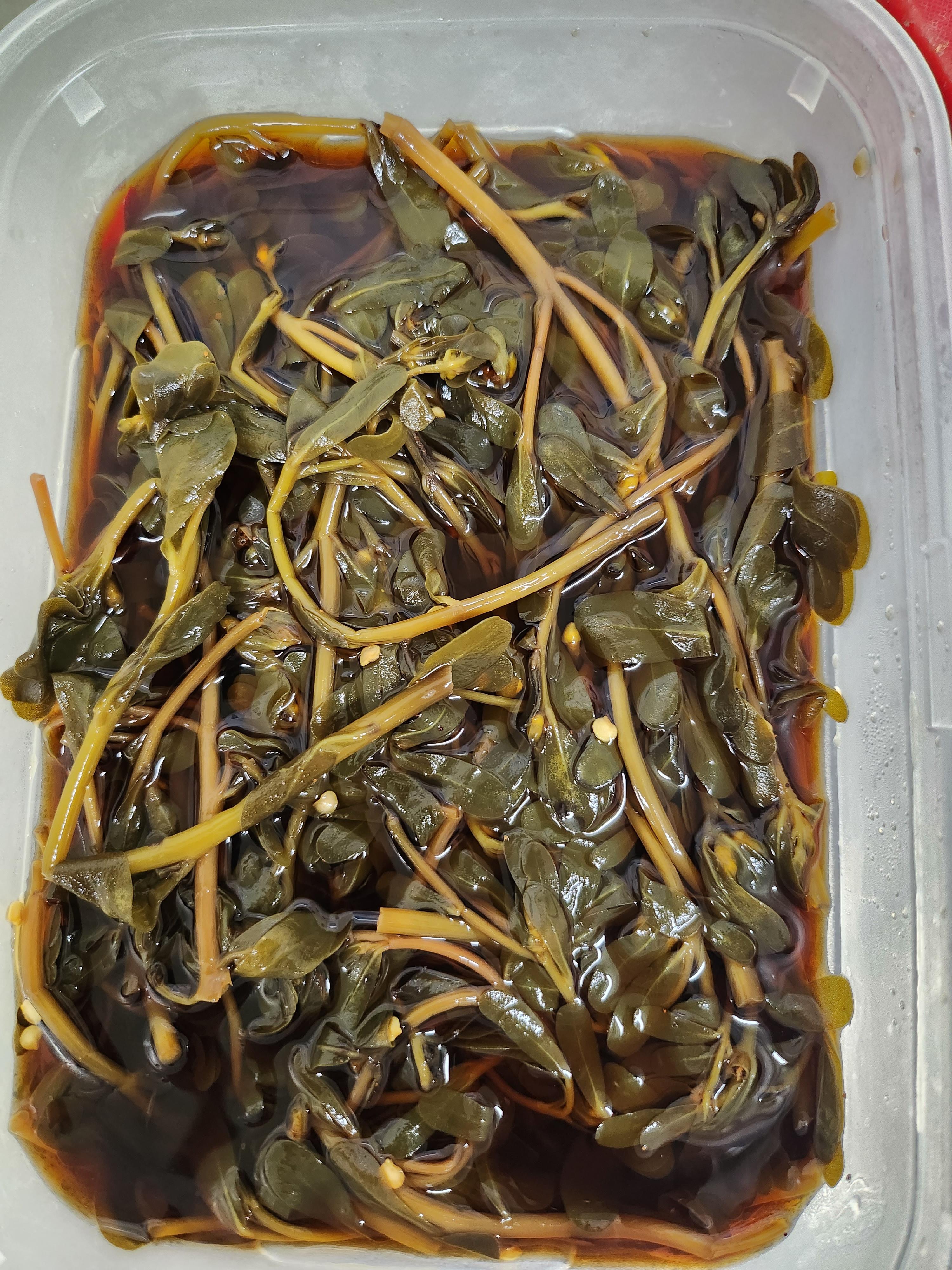아삭아삭 맛있는 쇠비름 장아찌 완성. 식감이 살짝 미끌하지만 건강에 좋은 장아찌. 고기 먹을 때에도 밥반찬으로도 참 좋다.