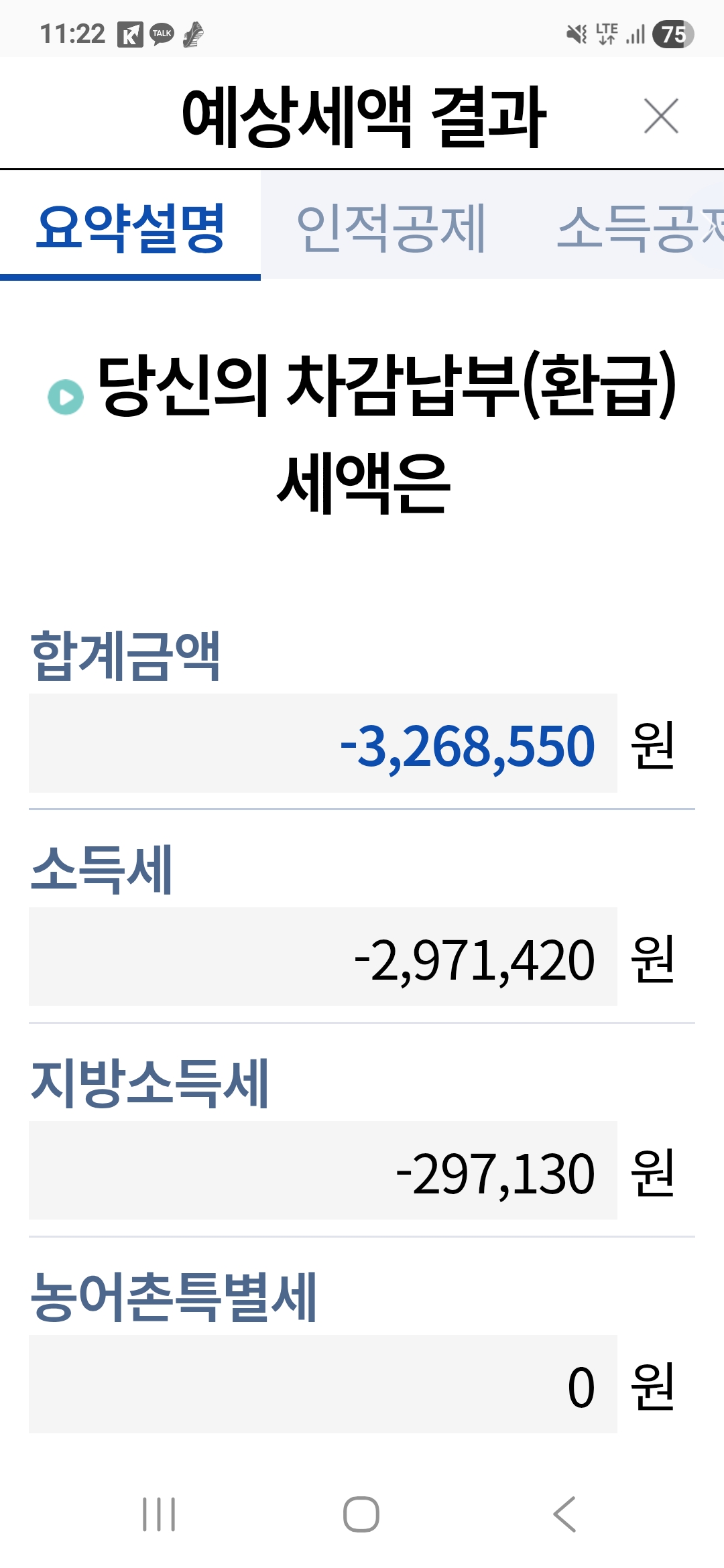 결과적으로 환급액이 발생했습니다.