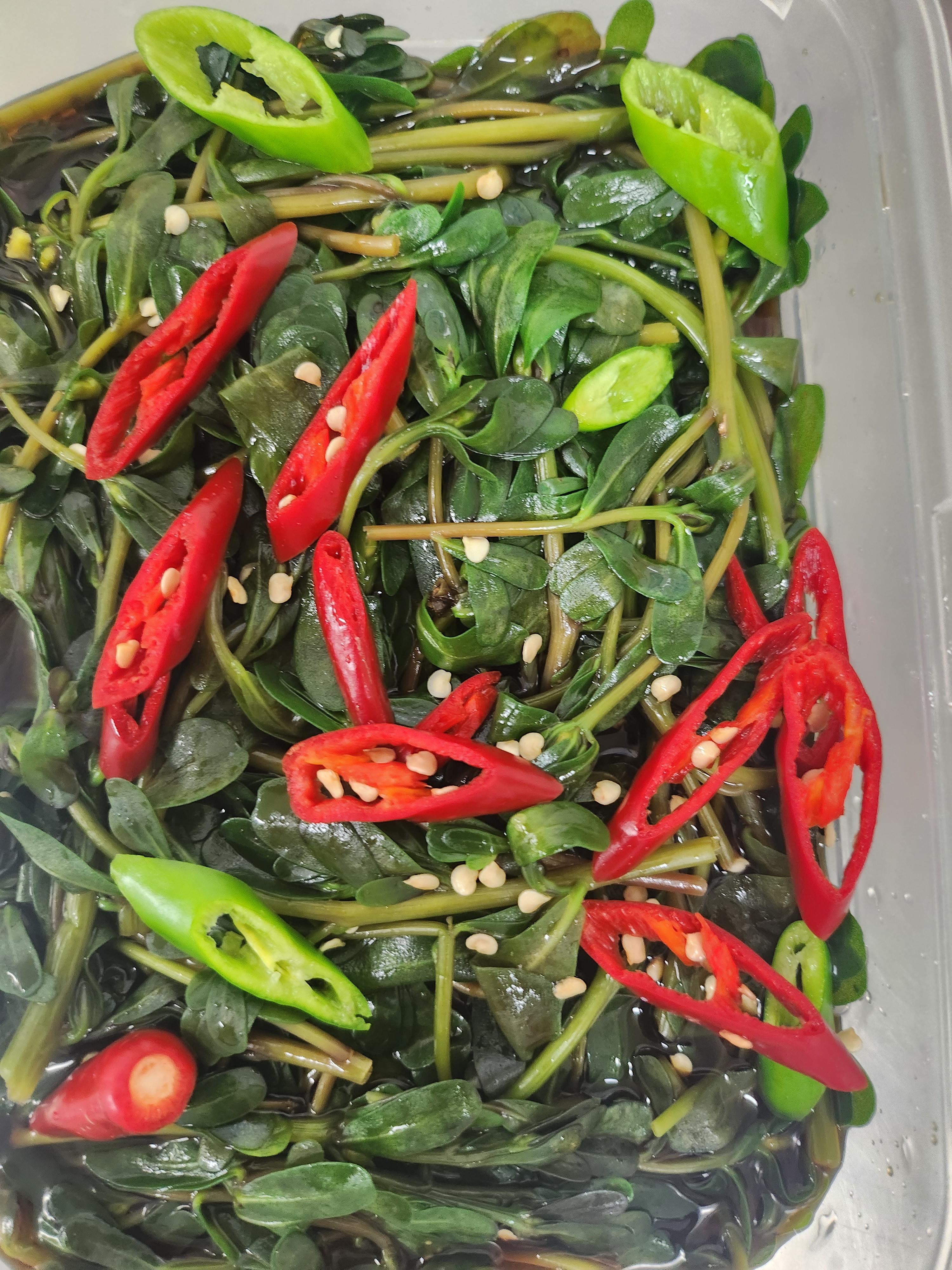 아삭아삭 맛있는 쇠비름 장아찌 완성. 식감이 살짝 미끌하지만 건강에 좋은 장아찌. 고기 먹을 때에도 밥반찬으로도 참 좋다.