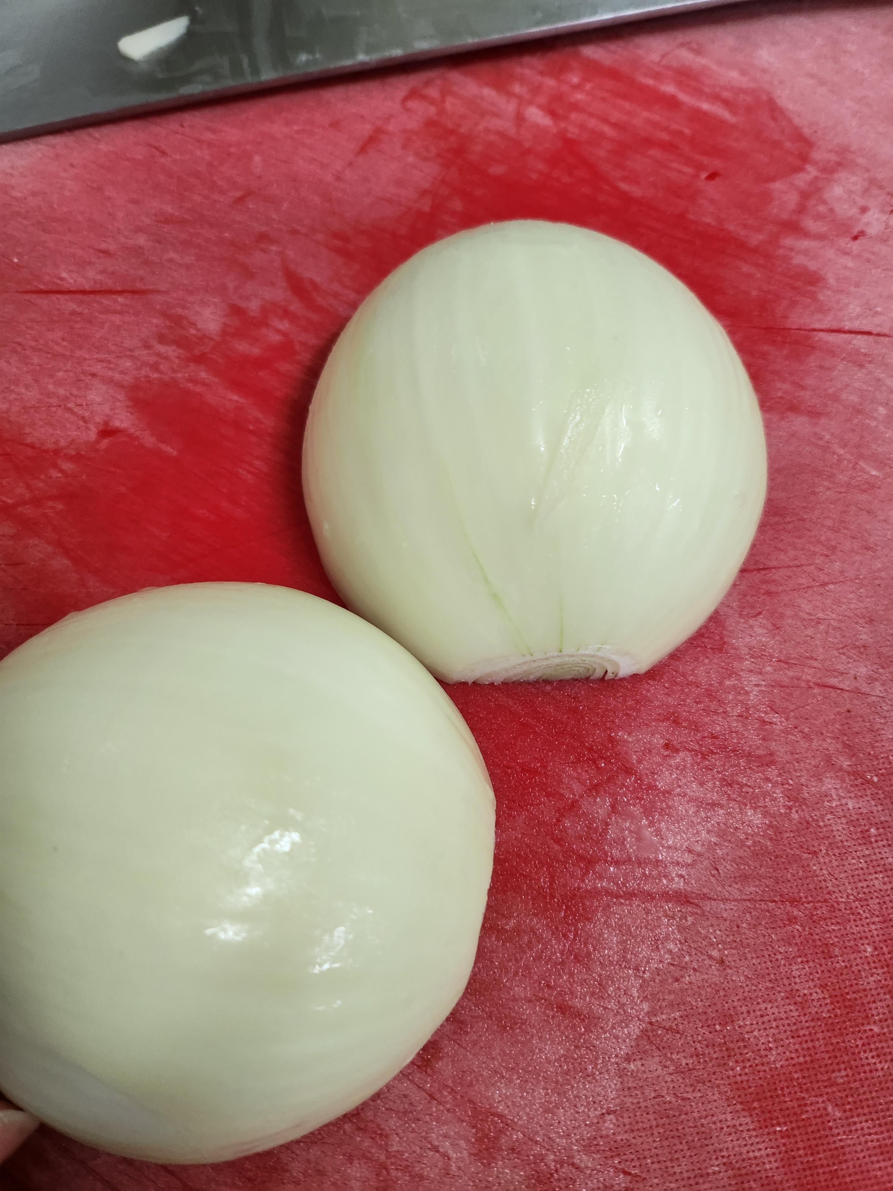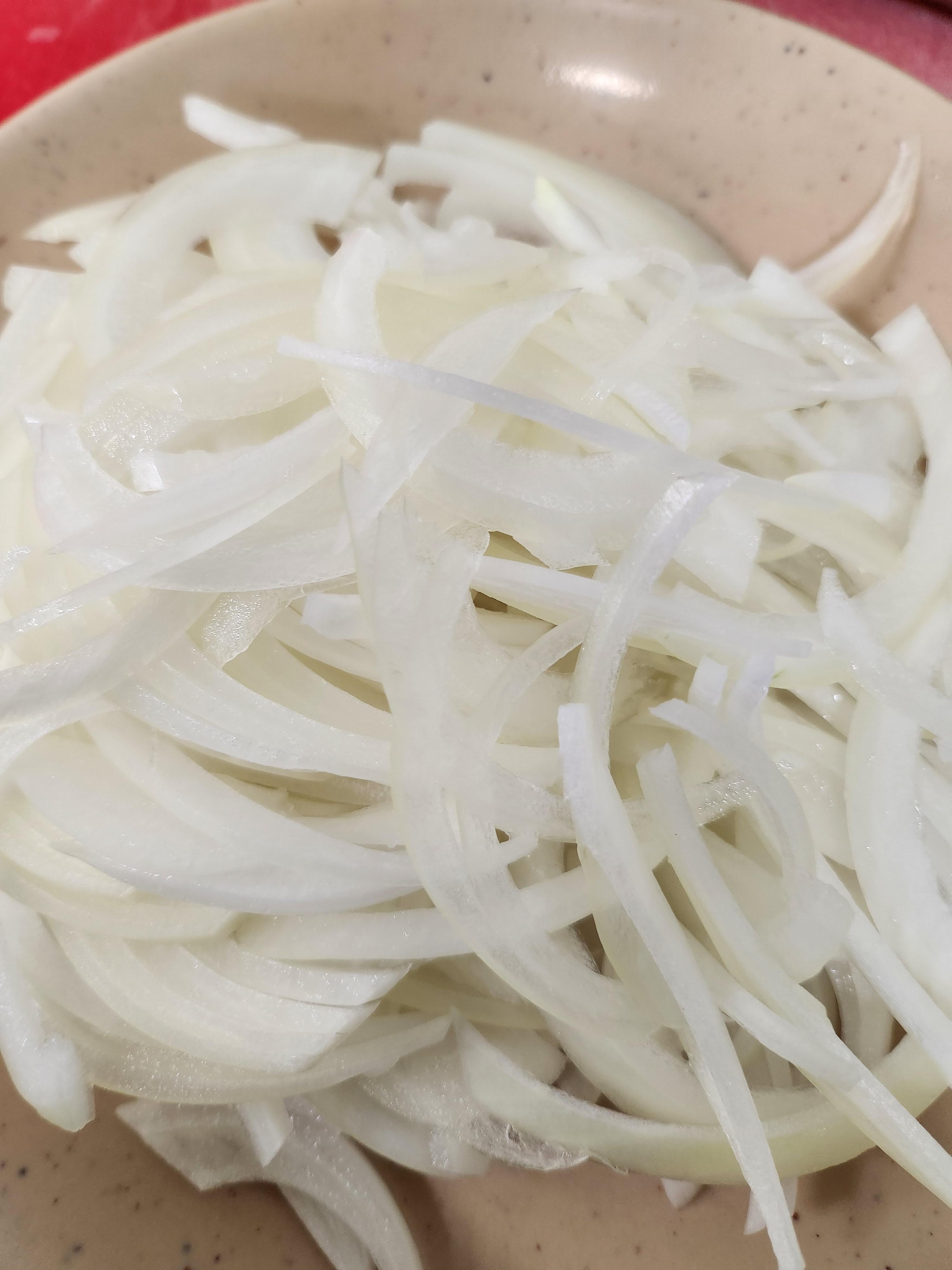 이것도 작은 팁인데 양끝을 잘라내면 양파채를 썰을 때 붙지 않고 깔끔하게 채를 썰 수 있다.