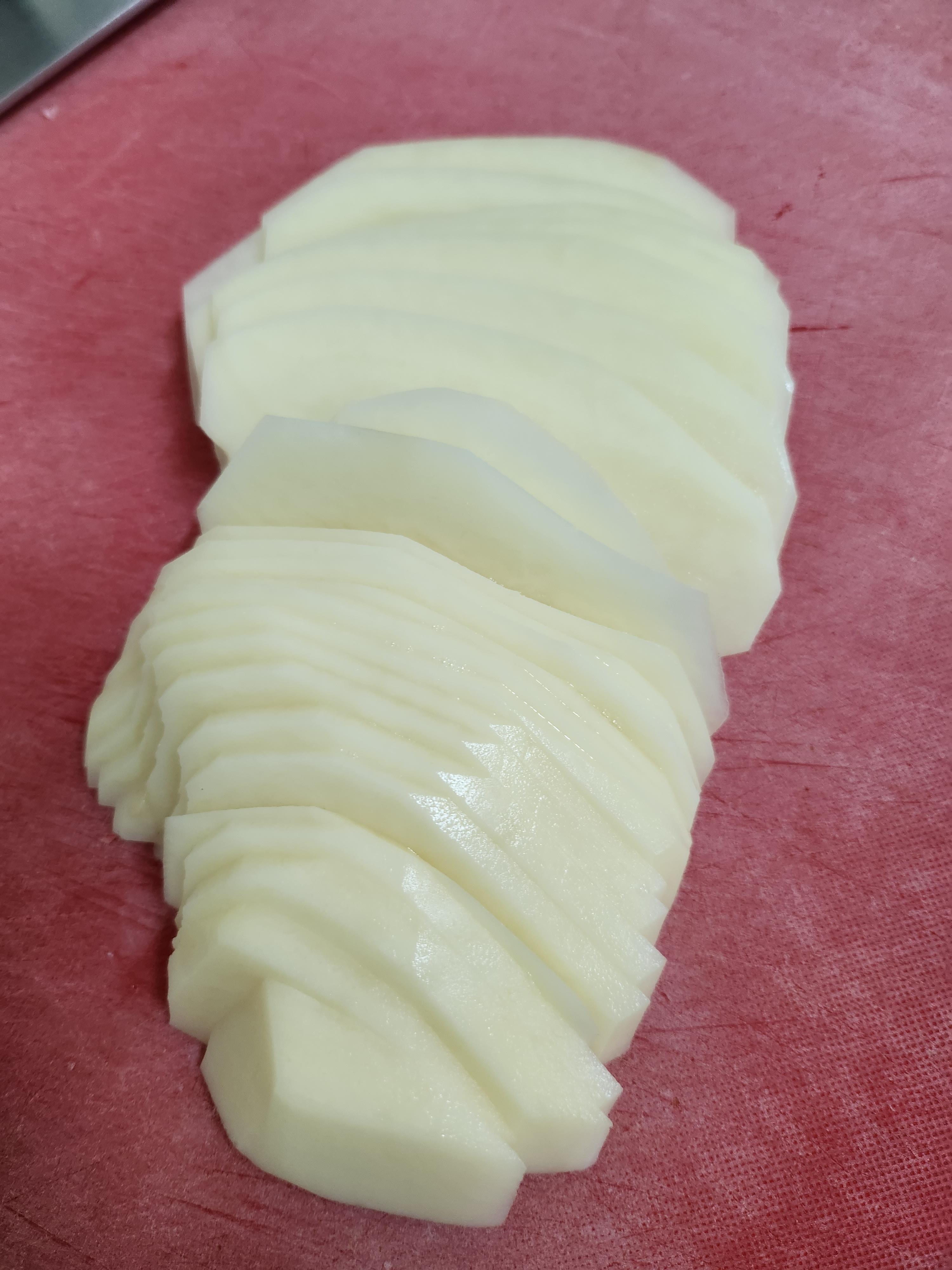 깨끗이 깎아서 씻은 3개의 감자를 채 썰어준다.