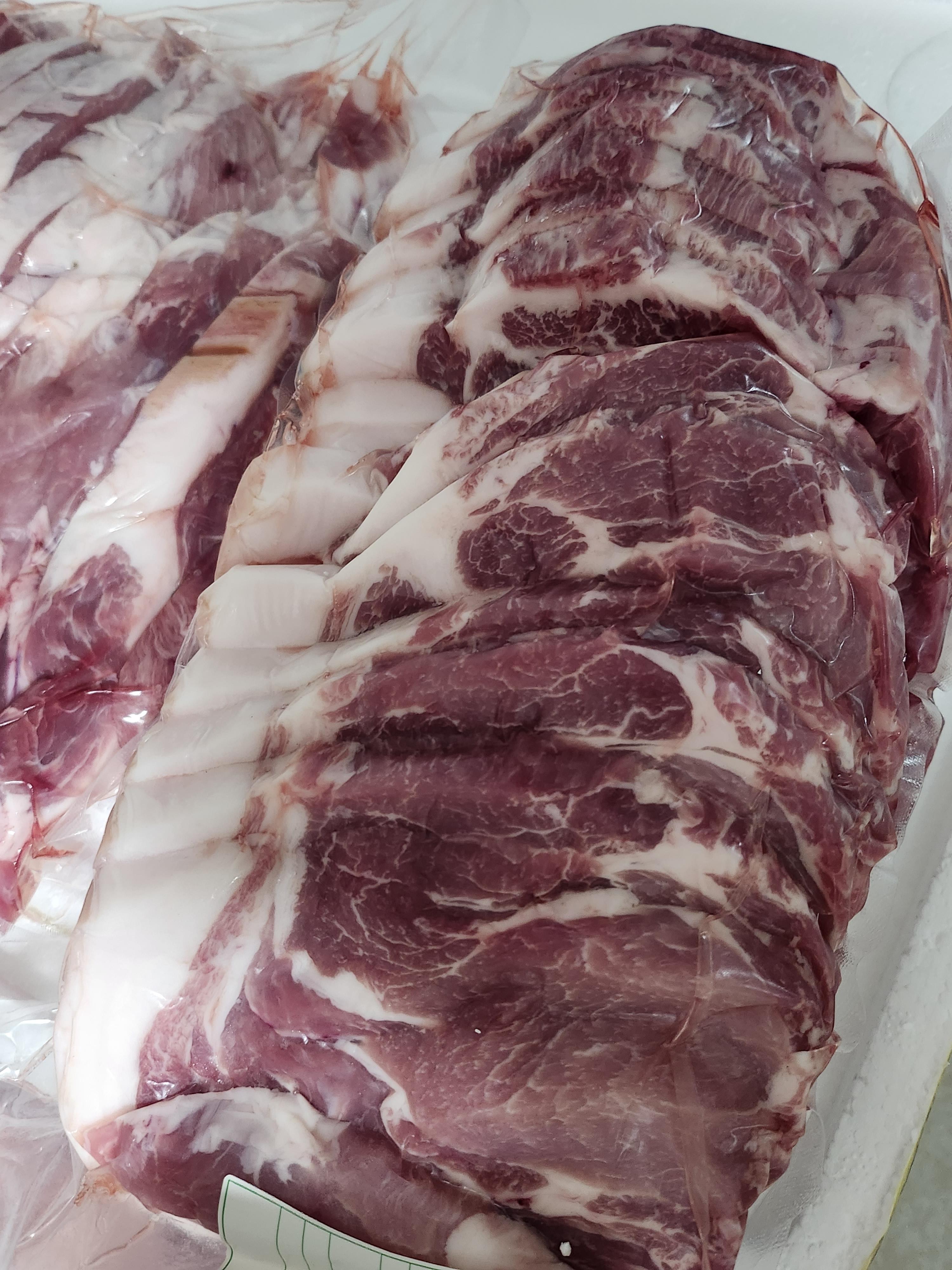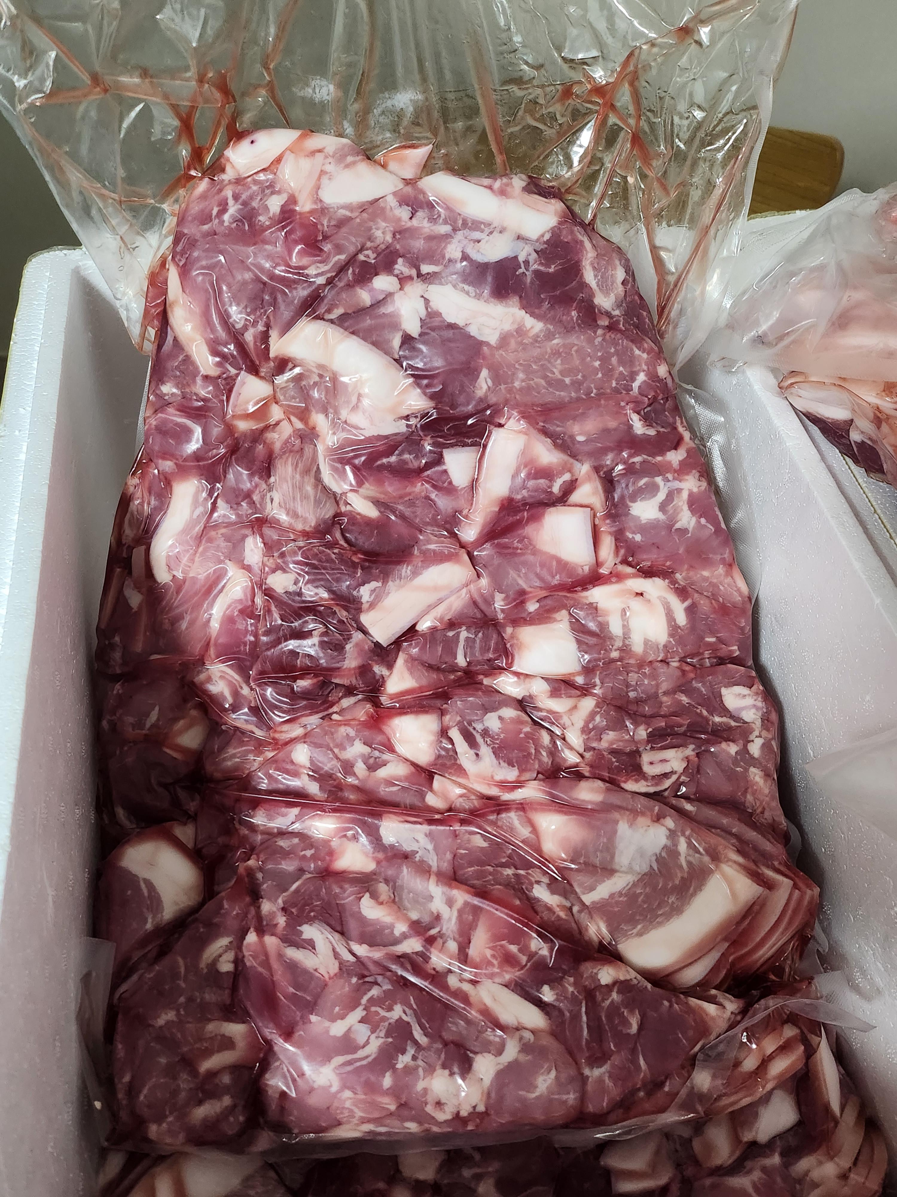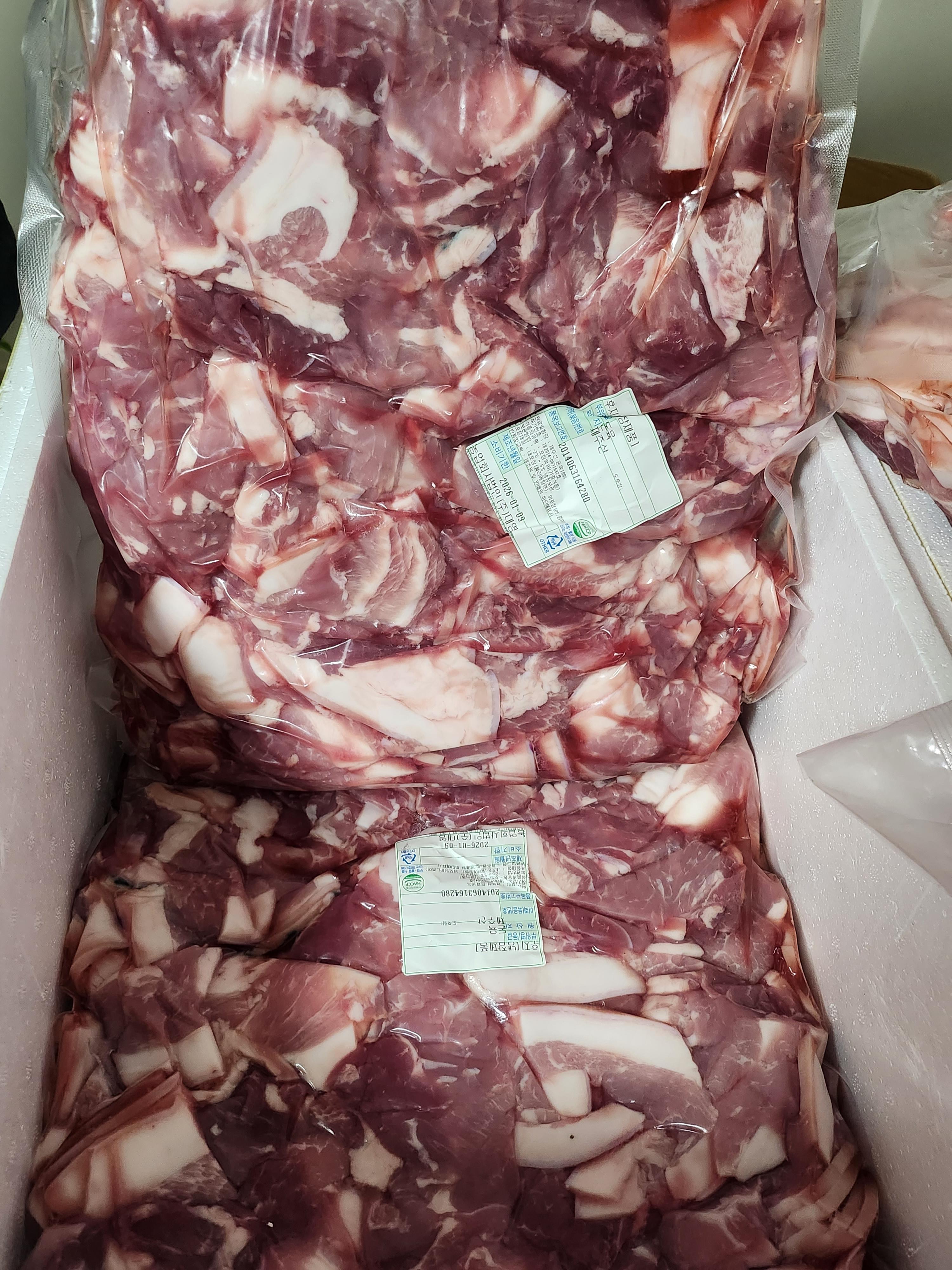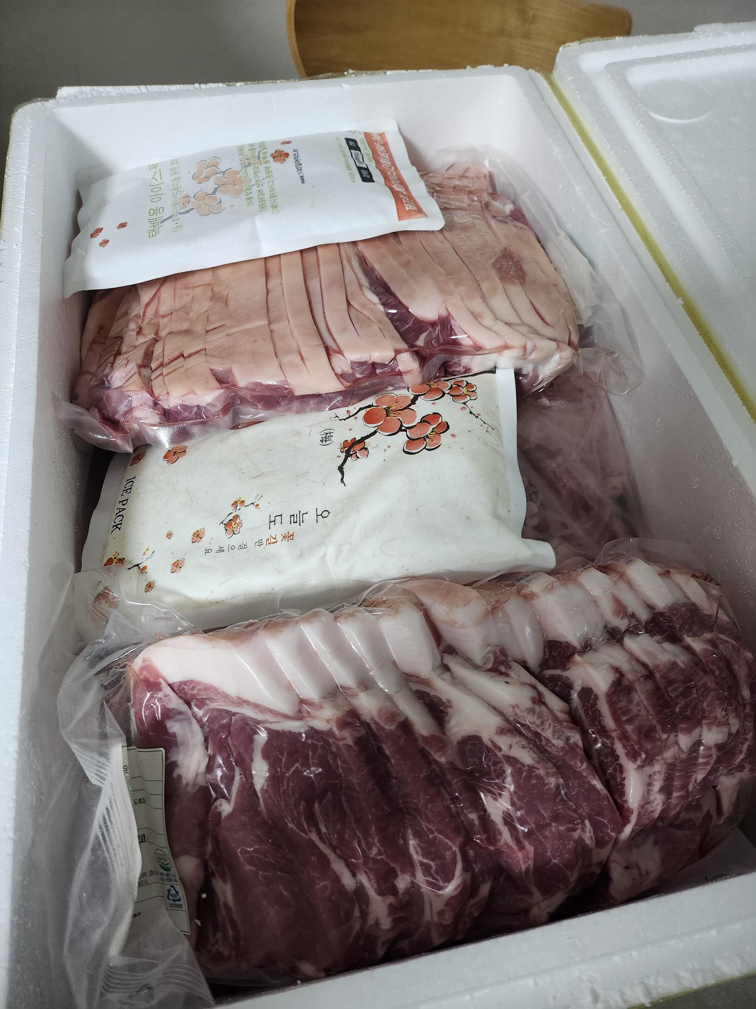 이렇게 4박스가 왔는데 3박스는 똑같고 1박스는  족발 같은 부속들과 일부 고기가 들어있었다. 내장은 받지 않았다.