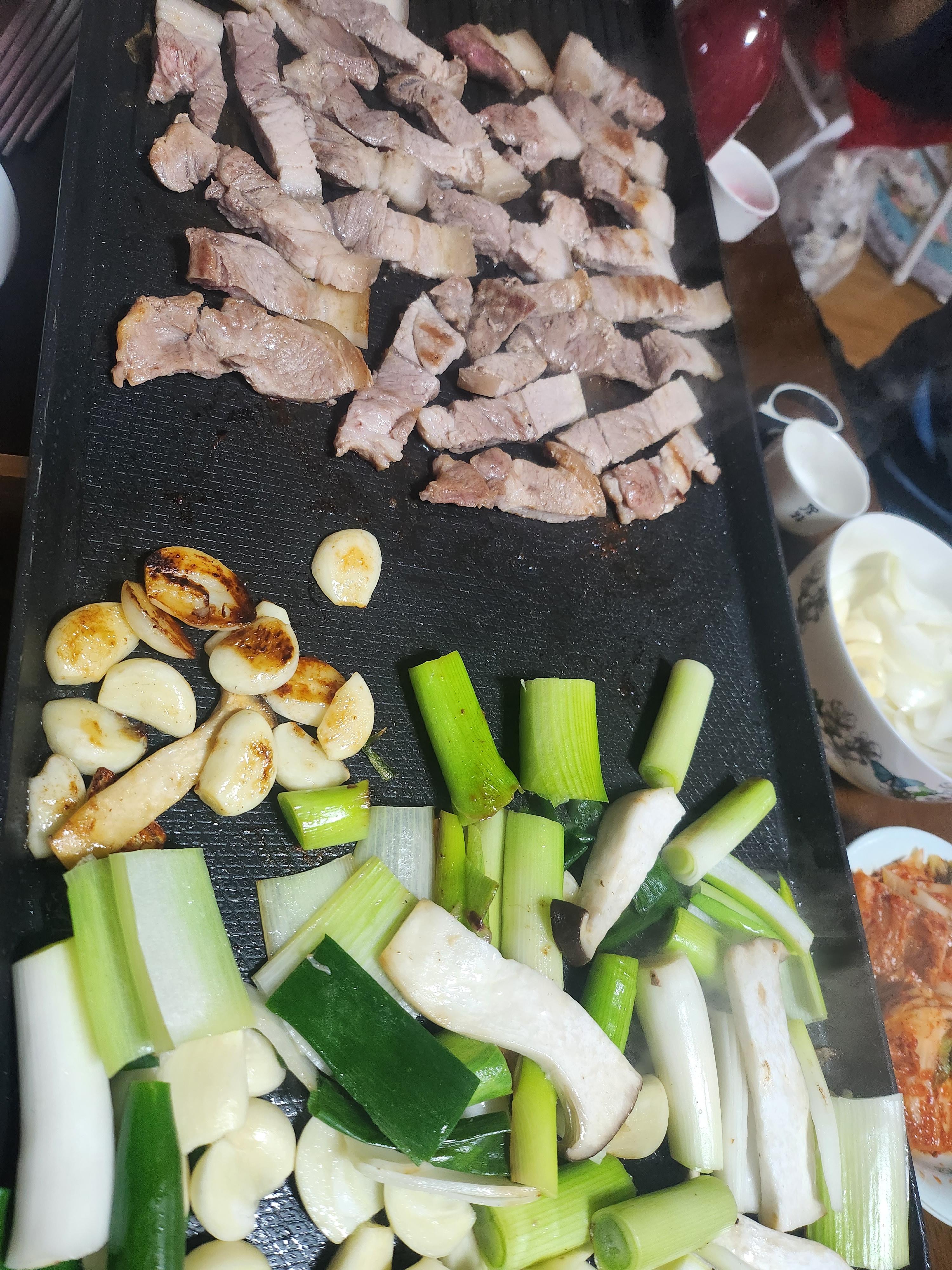 집안에서 불판에 구워먹는 고기맛이 일품이었다.