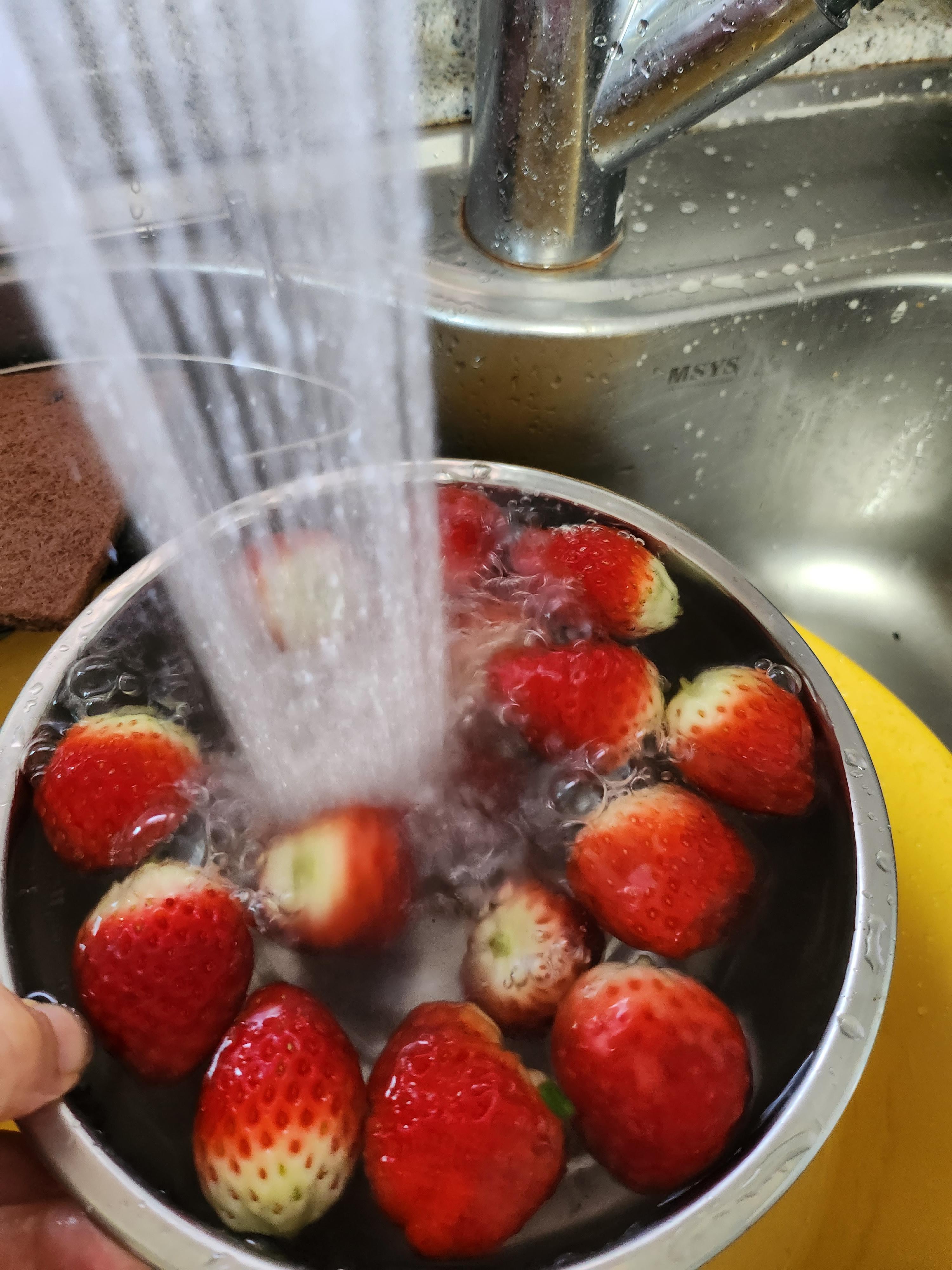 너무 많이 씻으면 딸기 과육속 단맛과 영양분이 빠져나가니 적당히 씻아내야 한다.