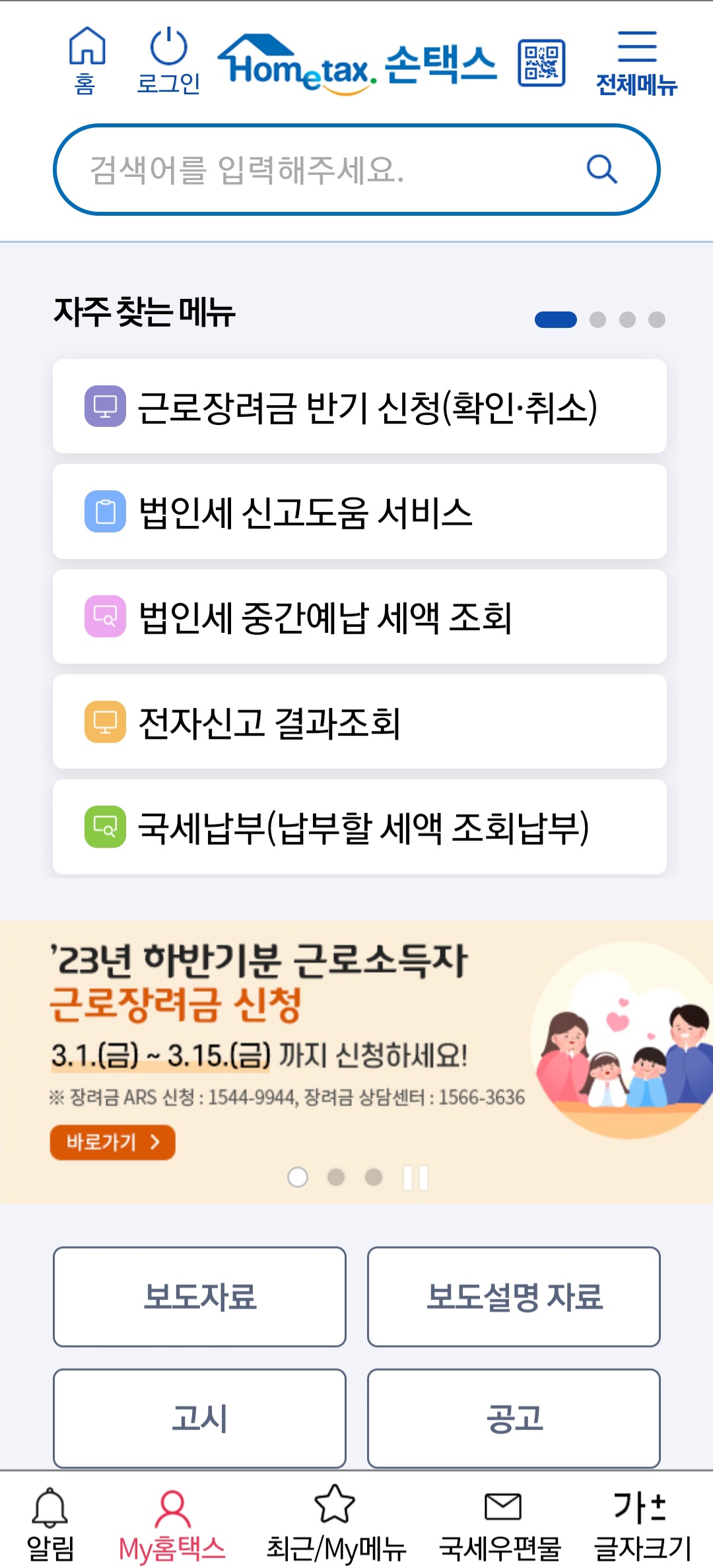 안내문을 못 받았다면 손택스 앱이나 홈택스 홈페이지 (www.hometax.go.kr)에서 로그인 후 근로장려금 관련 메뉴를 선택하면 확인할 수 있어요.