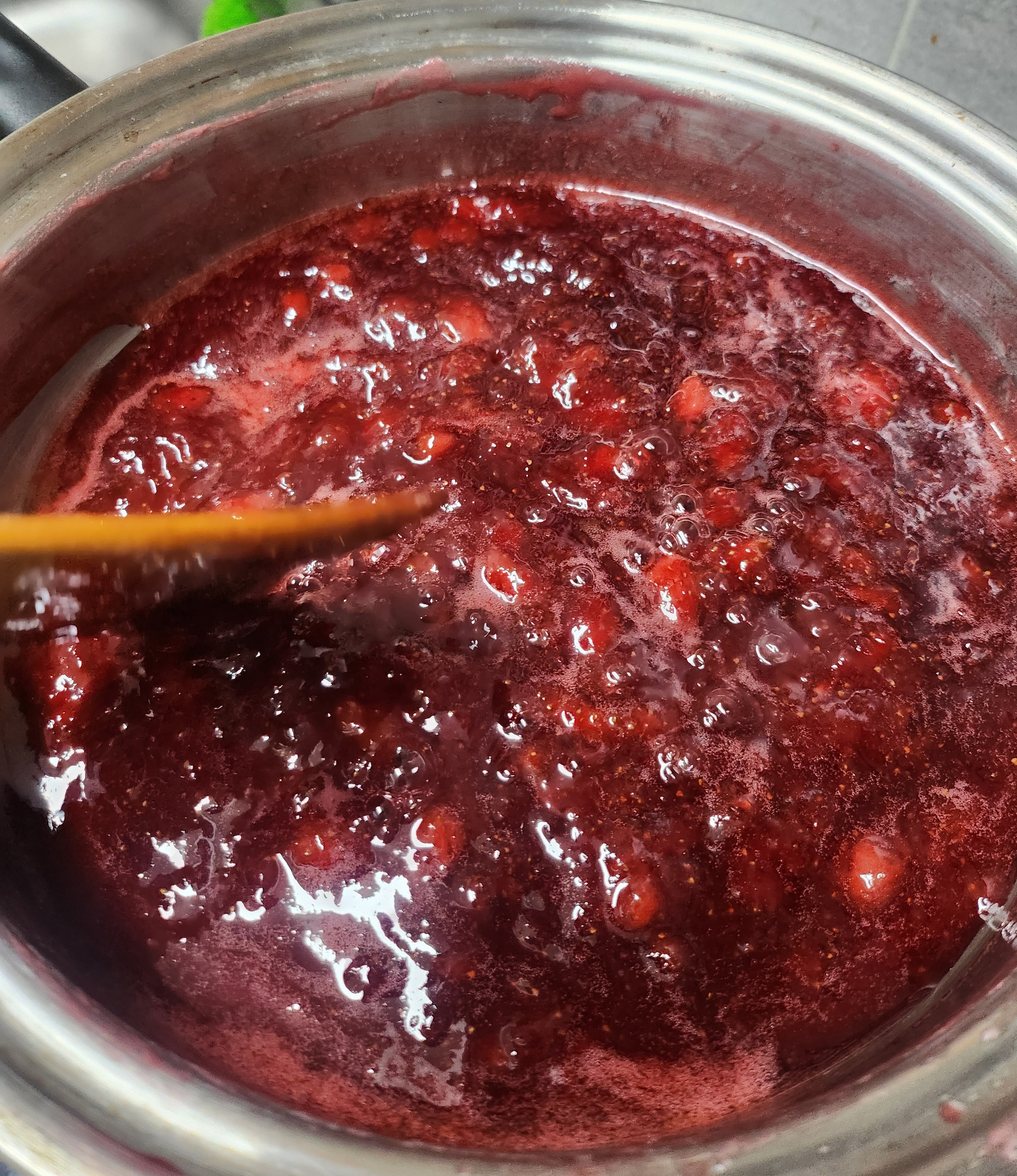 잘 달군 팬에 그냥 딸기를 투하해서 중불에 끓인다.