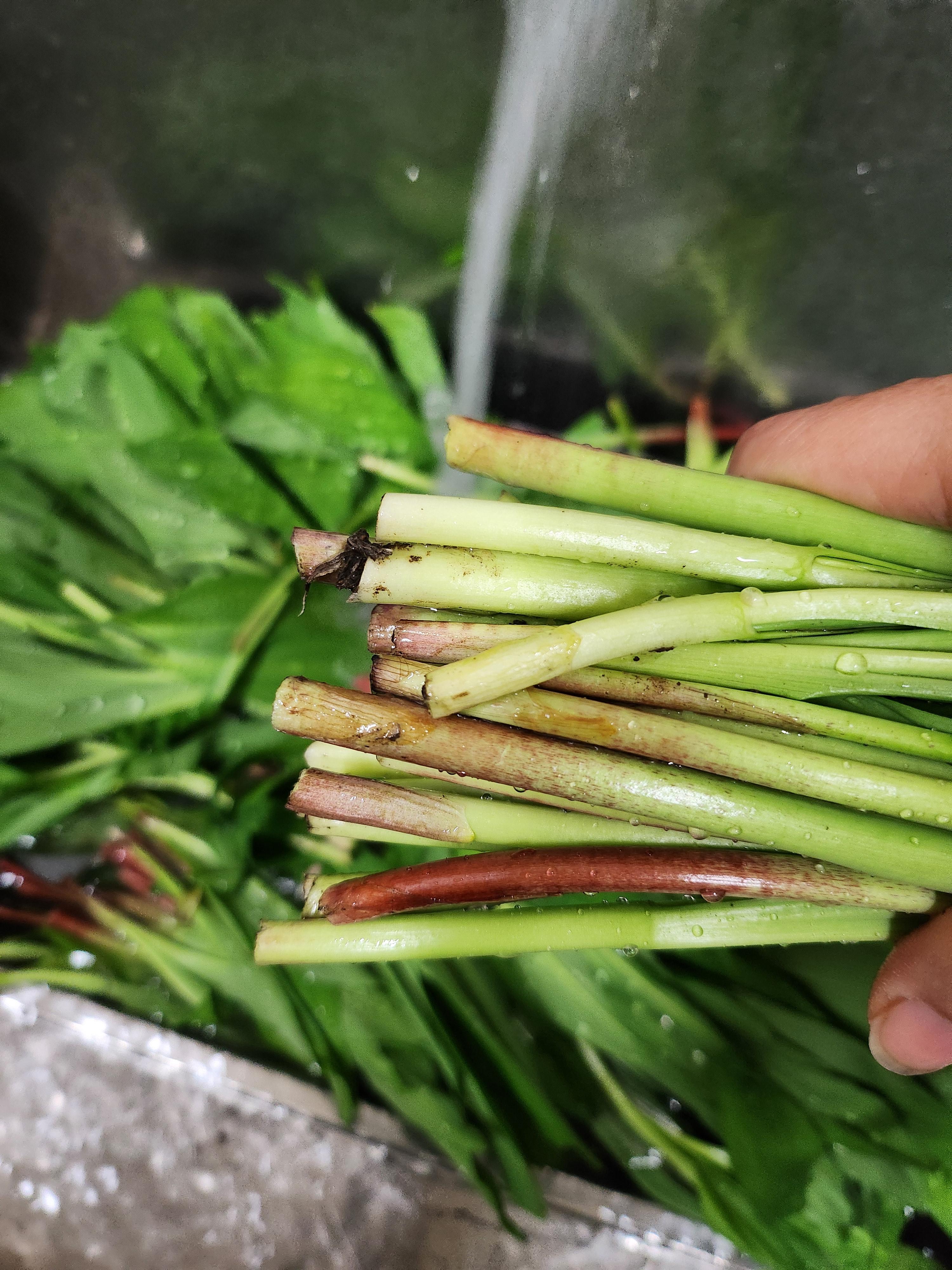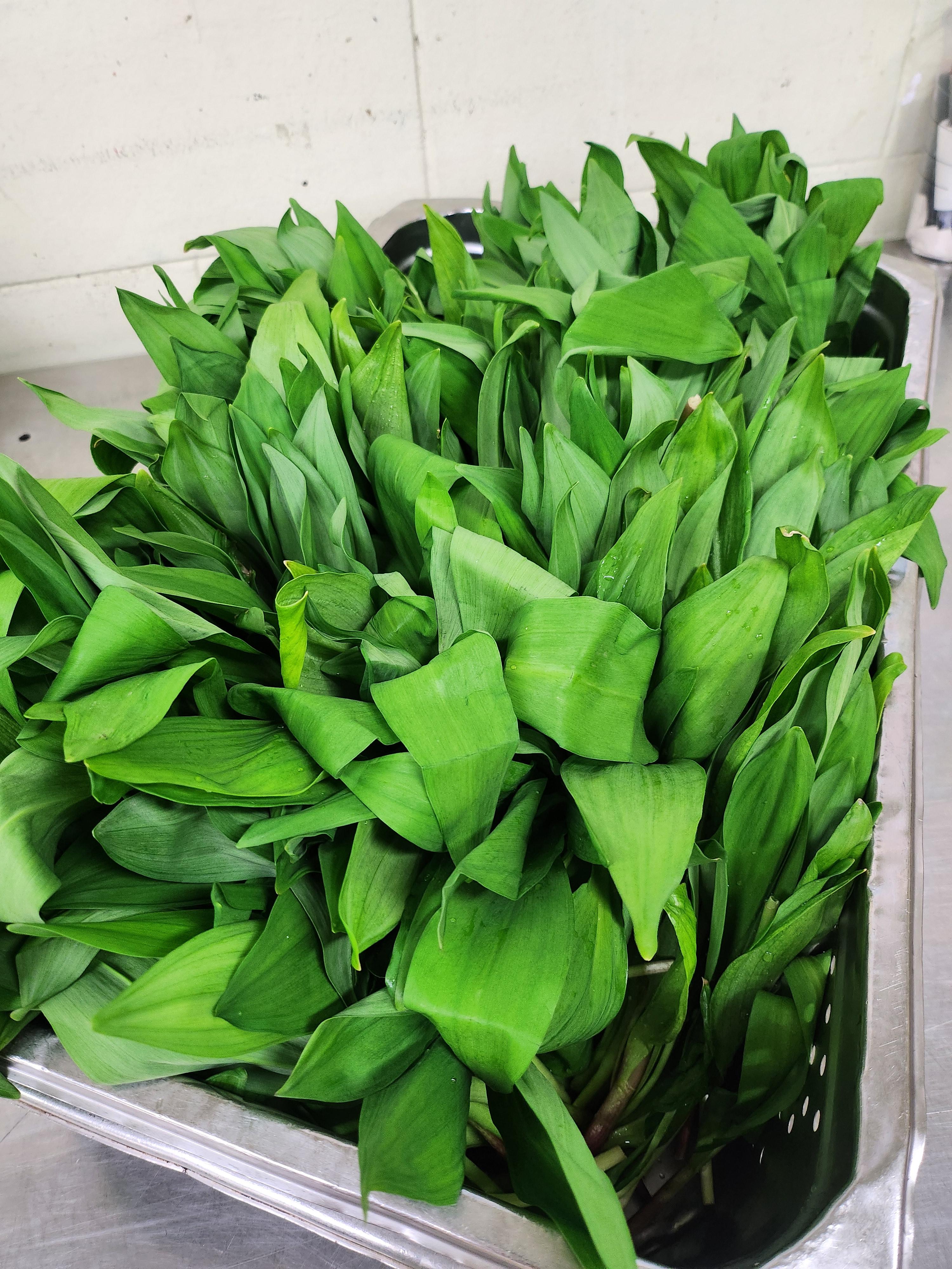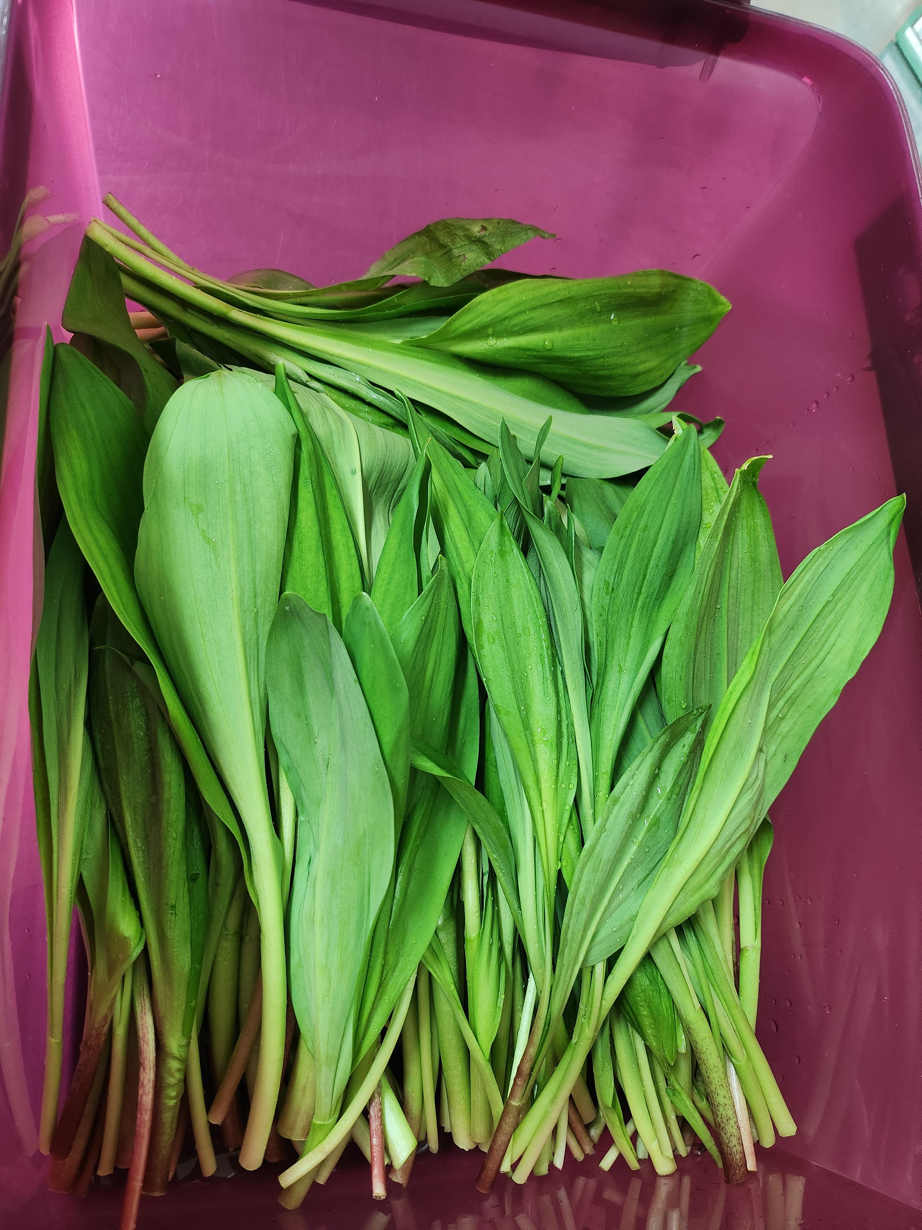 비닐에 담겨있는 명이나물을 꺼내어 큰 볼에 물을 잔뜩 받고 흐르는 물에 씻어야 묻어있는 흙이 잘 제거된다.