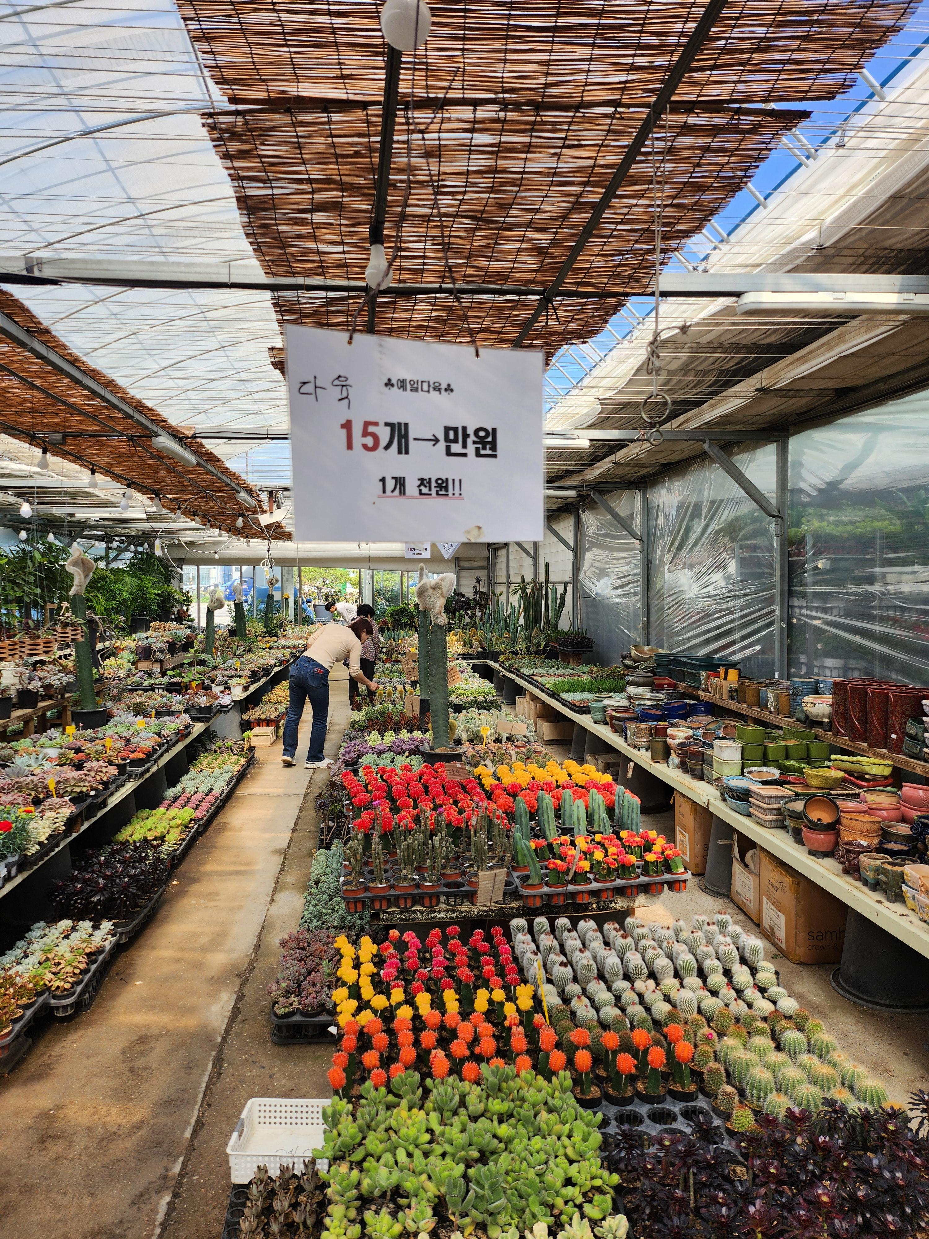엄마와 동네친구 두 분을 모시고 용인에 있는 남사화훼집하장에 다녀왔다. 15개 만원 하는 소형다육을 사 왔다. 개수가 많아 골라 담는 재미가 좋다. 작지만 귀엽고 예쁘고 알찬 이 아이들을 분