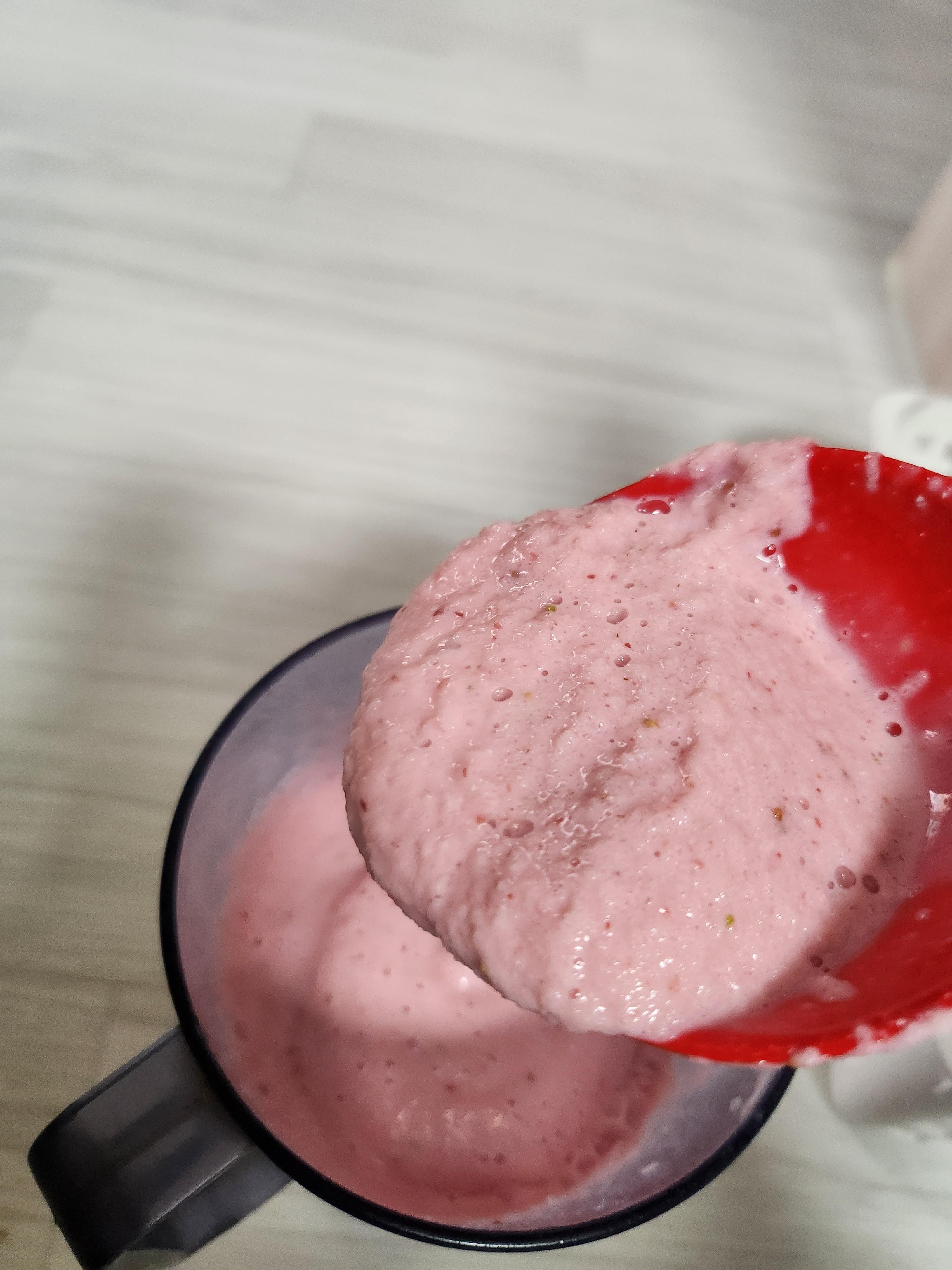 더 단맛을 원하거나 좀 더 진한맛을 원한다면 딸기 요거트를 얼려서 추가해 주면 좋다.