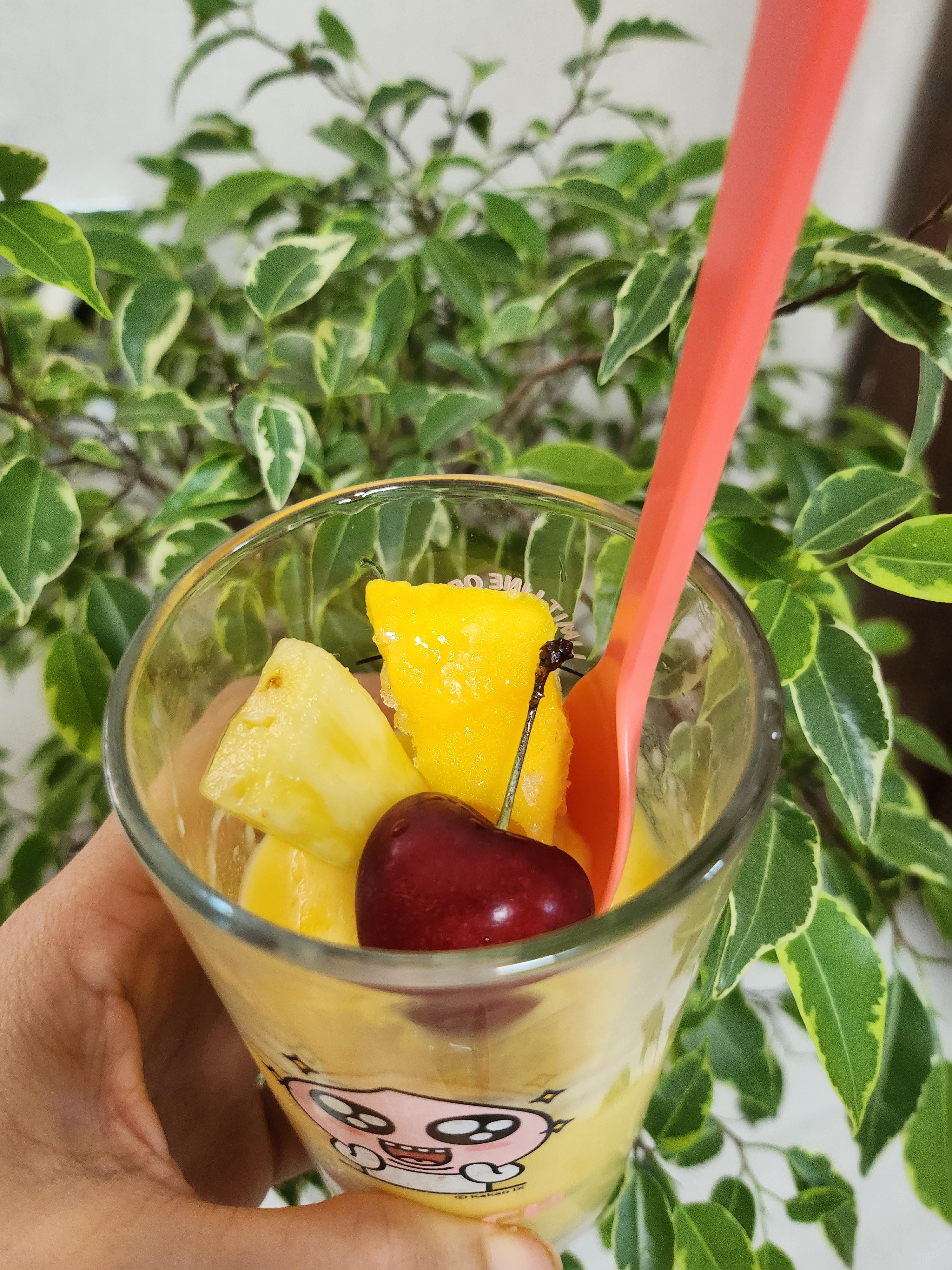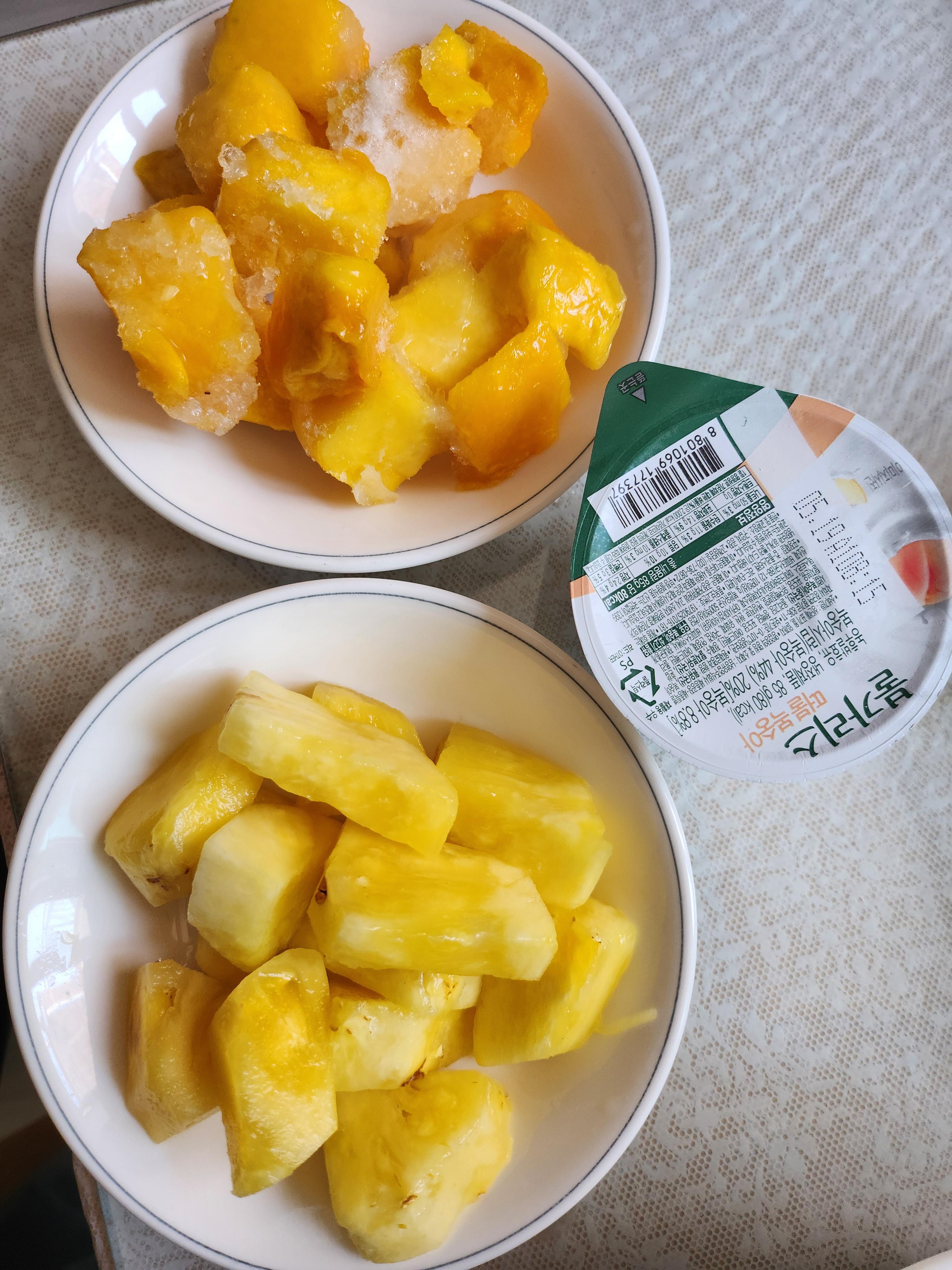 냉동 애플망고가 집에 있어서 생파인애플과 함께 스무디를 만들어 보았다.