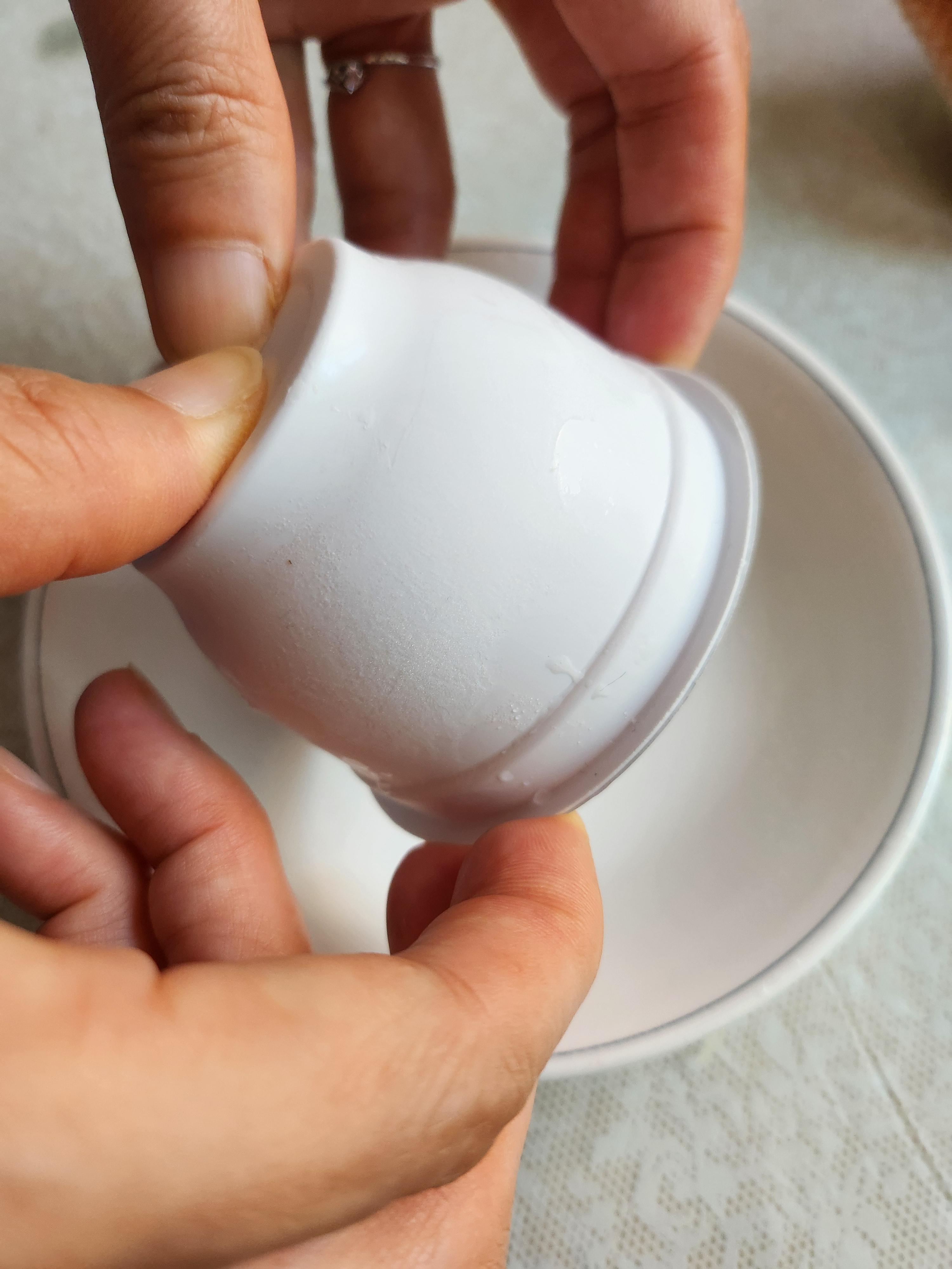 얼린 복숭아요거트의 뚜껑을 제거하고 밑에서 밀어내면 입구가 넓어서 쏙 빠진다.