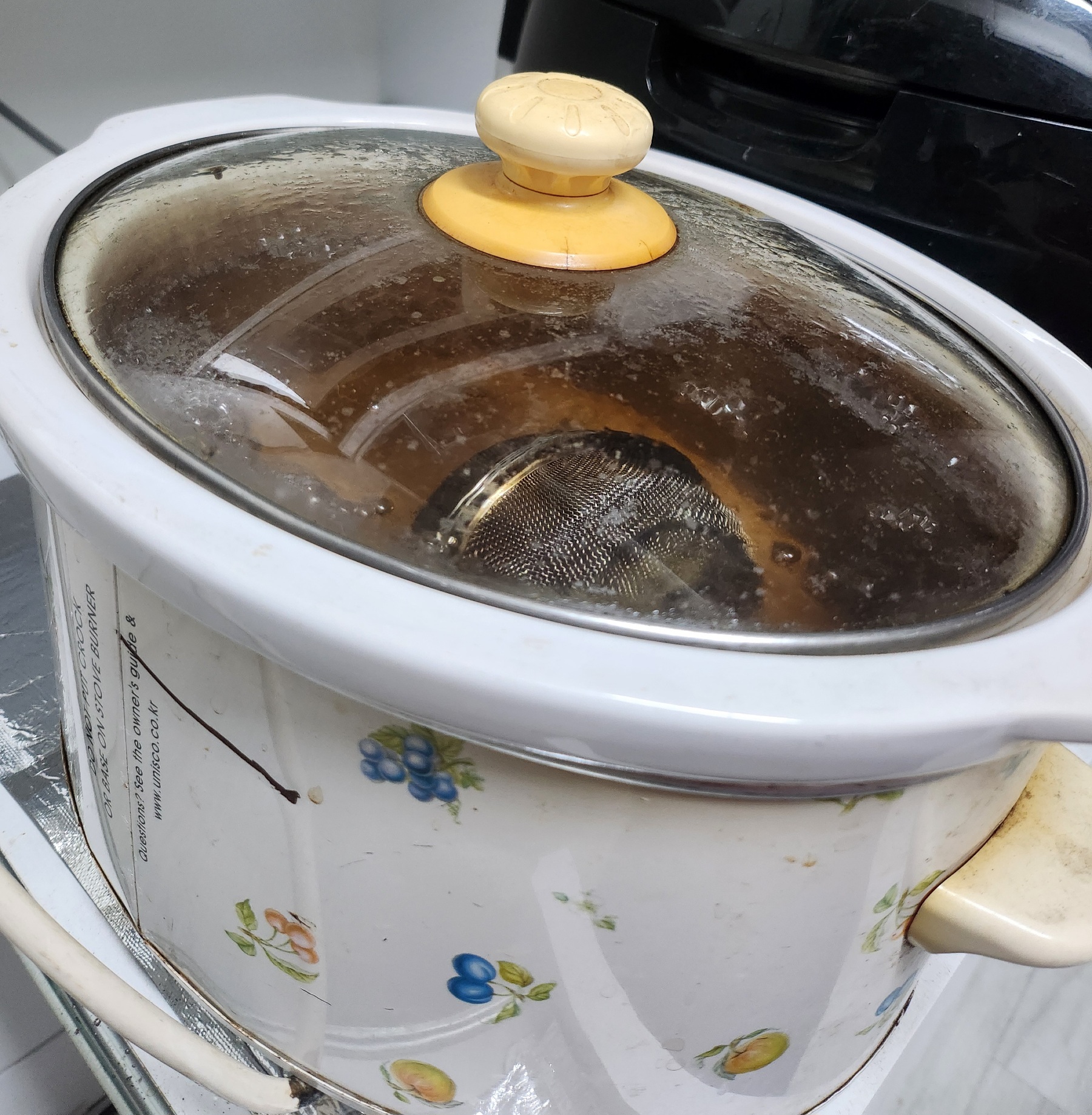 슬로우쿠커는 도기 재질로 되어 있어 장시간 사용하면 색이 변할 수 있어요. 하지만 걱정할 필요는 없습니다. 색이 변한 부분은 매직스펀지를 사용해 쉽게 닦아낼 수 있어, 깔끔하게 관리할 수 있습니다.