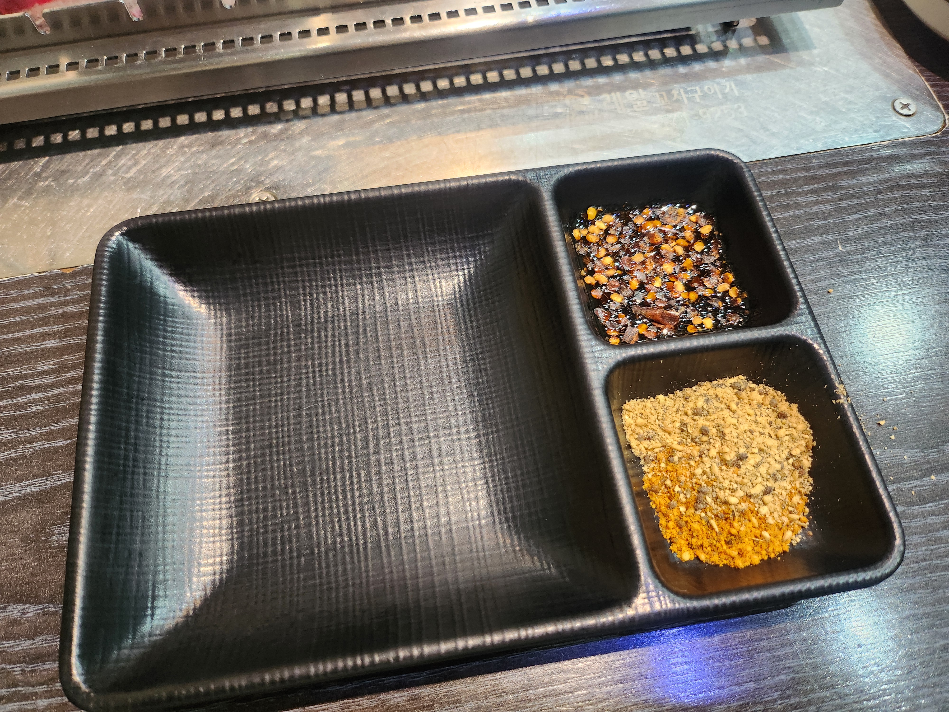 기본양념세트입니다. 큰 칸에는 간장을 붓는 곳인데 붓지 않고 사진을 찍었네요.