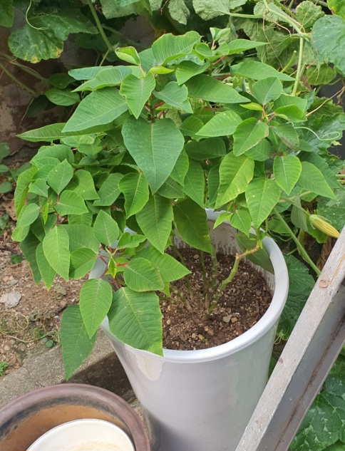 2. 자른 부분은 밑동에 있는 잎을 제거해 깔끔하게 만들어 줍니다. (이때 흰 수액이 나와서 피부에 닿으면 알러지 반응이 일어날 수 있으니 장갑을 끼고 작업을 하시고, 피부에 닿게 되면 깨끗한 물에 반드시 씻어내 줍니다.)