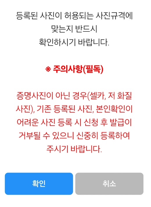 6개월 이내 촬영한 컬러 사진 (규격 3.5cm*4.5cm) 1매가 꼭 필요합니다.