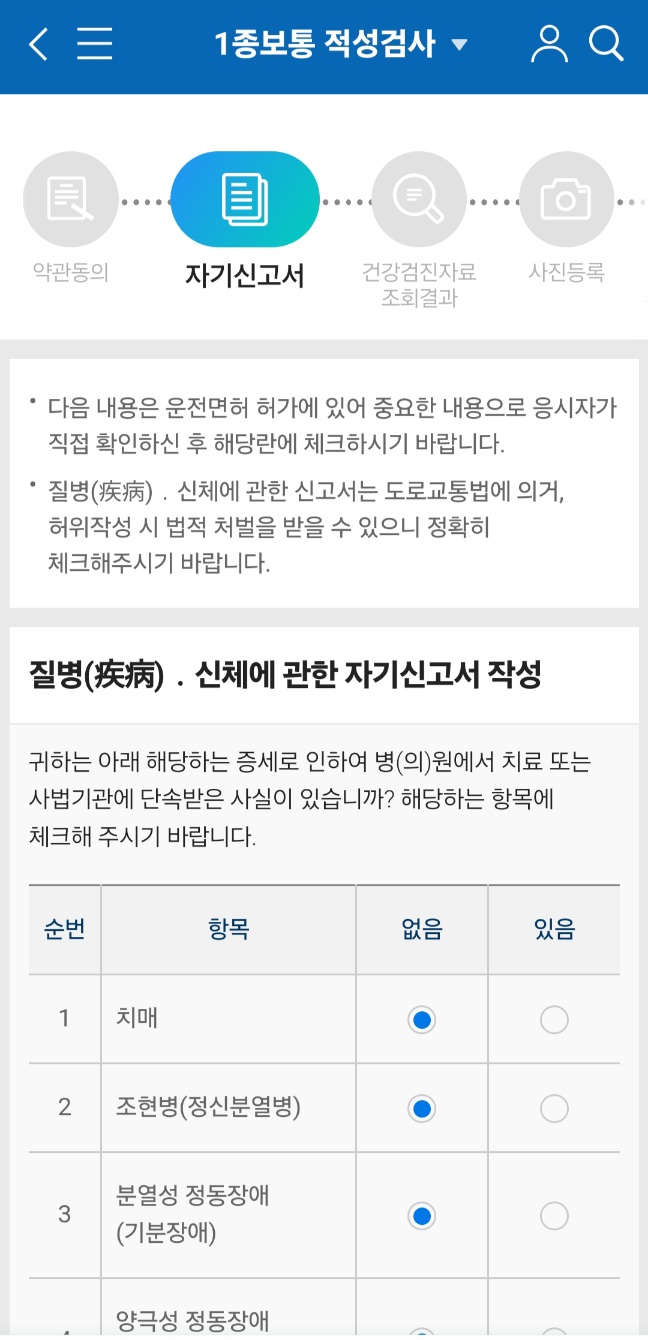 본인의 면허종류 선택해서 클릭