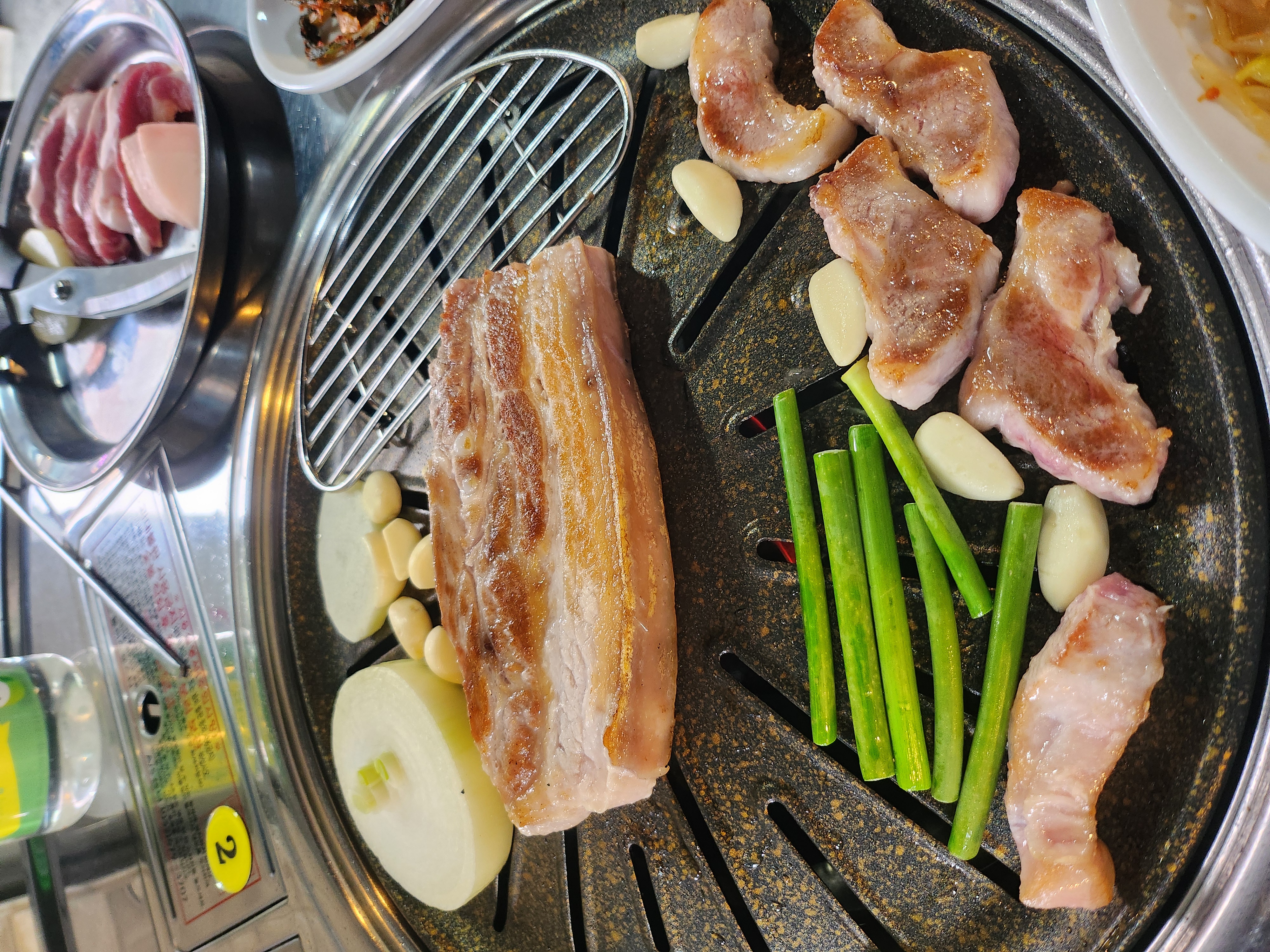 가브리살과 생삼겹살이 잘 익어갑니다.