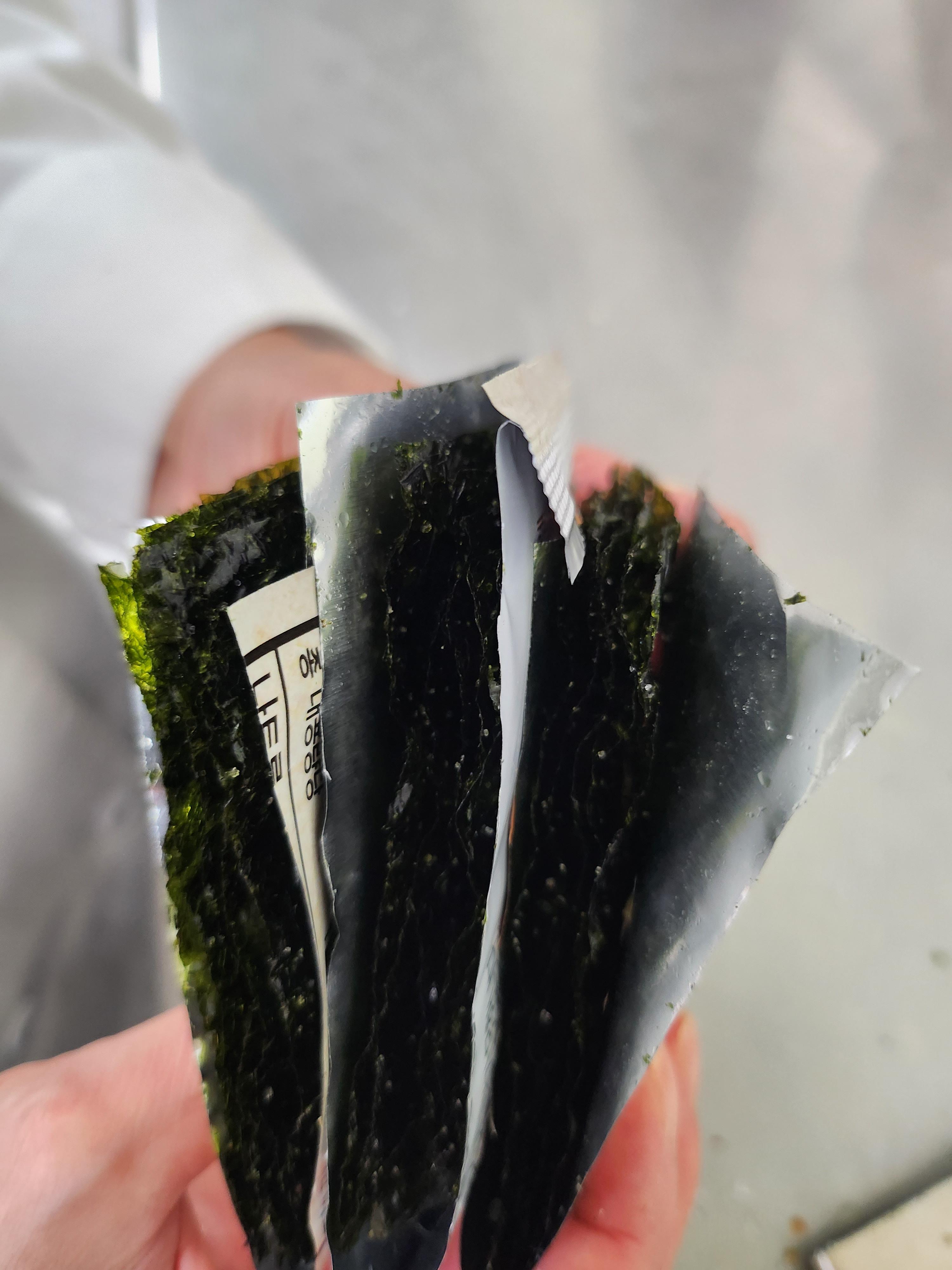 단점은 김이 금방 눅어버리기에 먹기 직전에 잘라서 바로 먹어야 한다. 먹고 남은 김은 밀폐용기에 미리 꺼내놓은 실리카겔과 같이 넣어 보관하고 빠른 시간 내에 먹어야 한다.