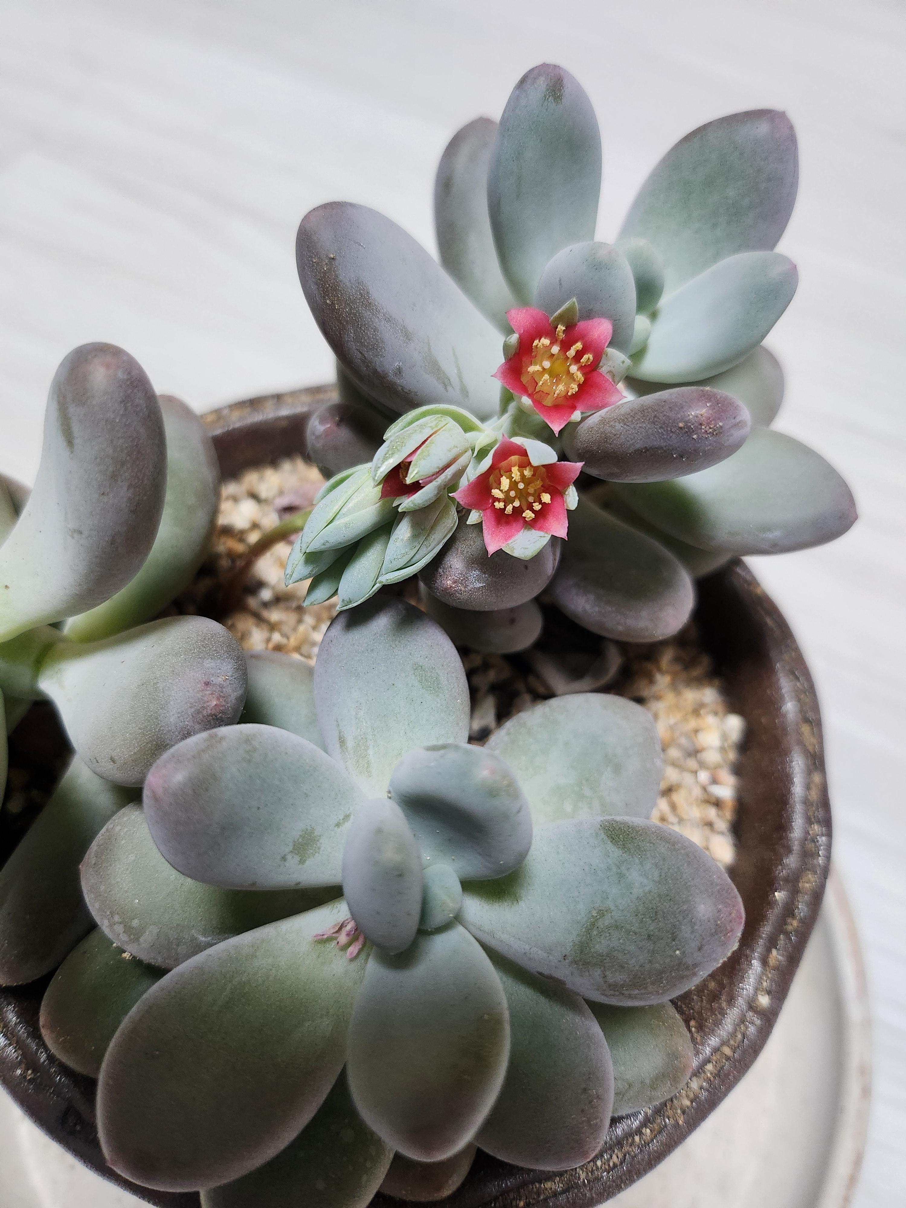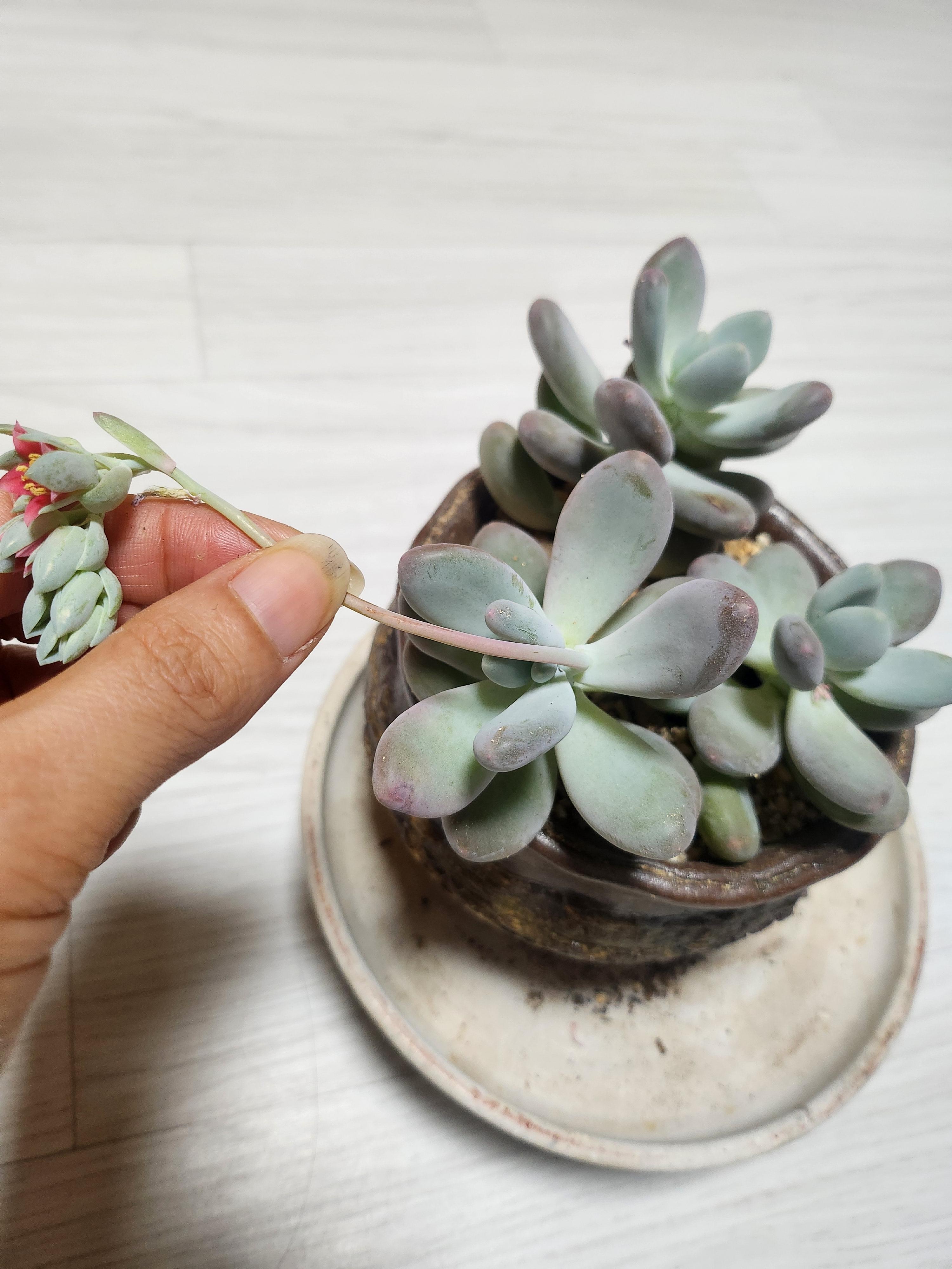 은은한 꽃을 감상하는 것도 좋으나, 식집사들이 한결같이 하는 말은 꽃대를 잘라주지 않으면 다육이 자체의 얼굴이 안 예뻐지거나 망가진다고 한다.