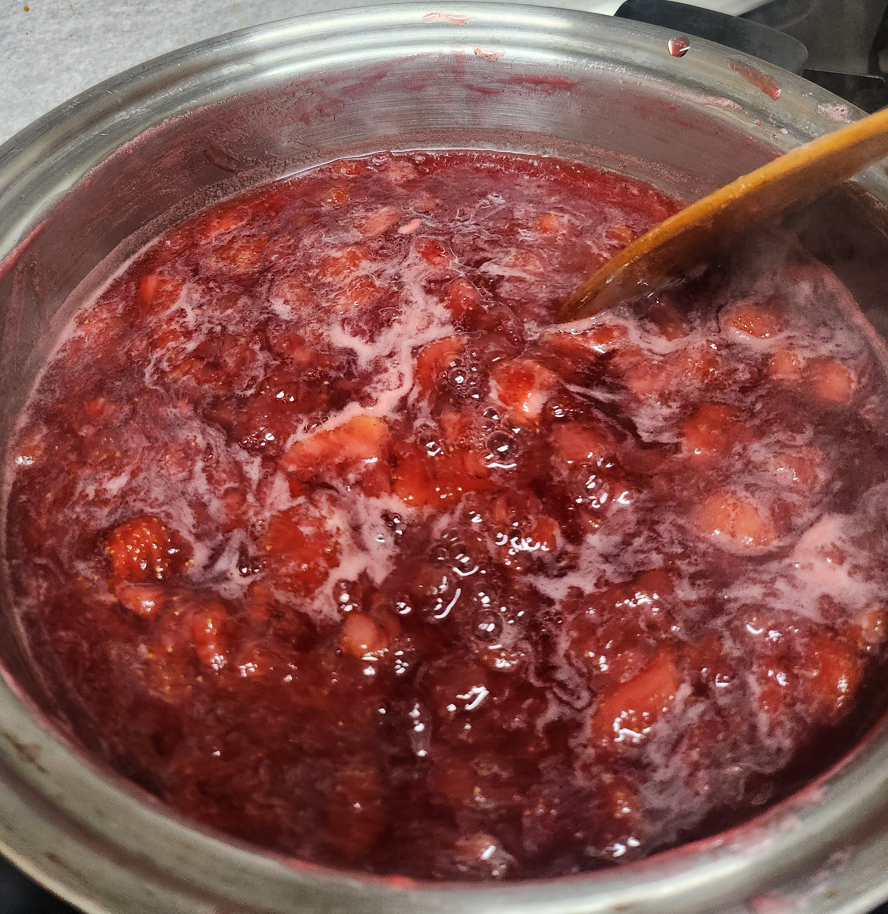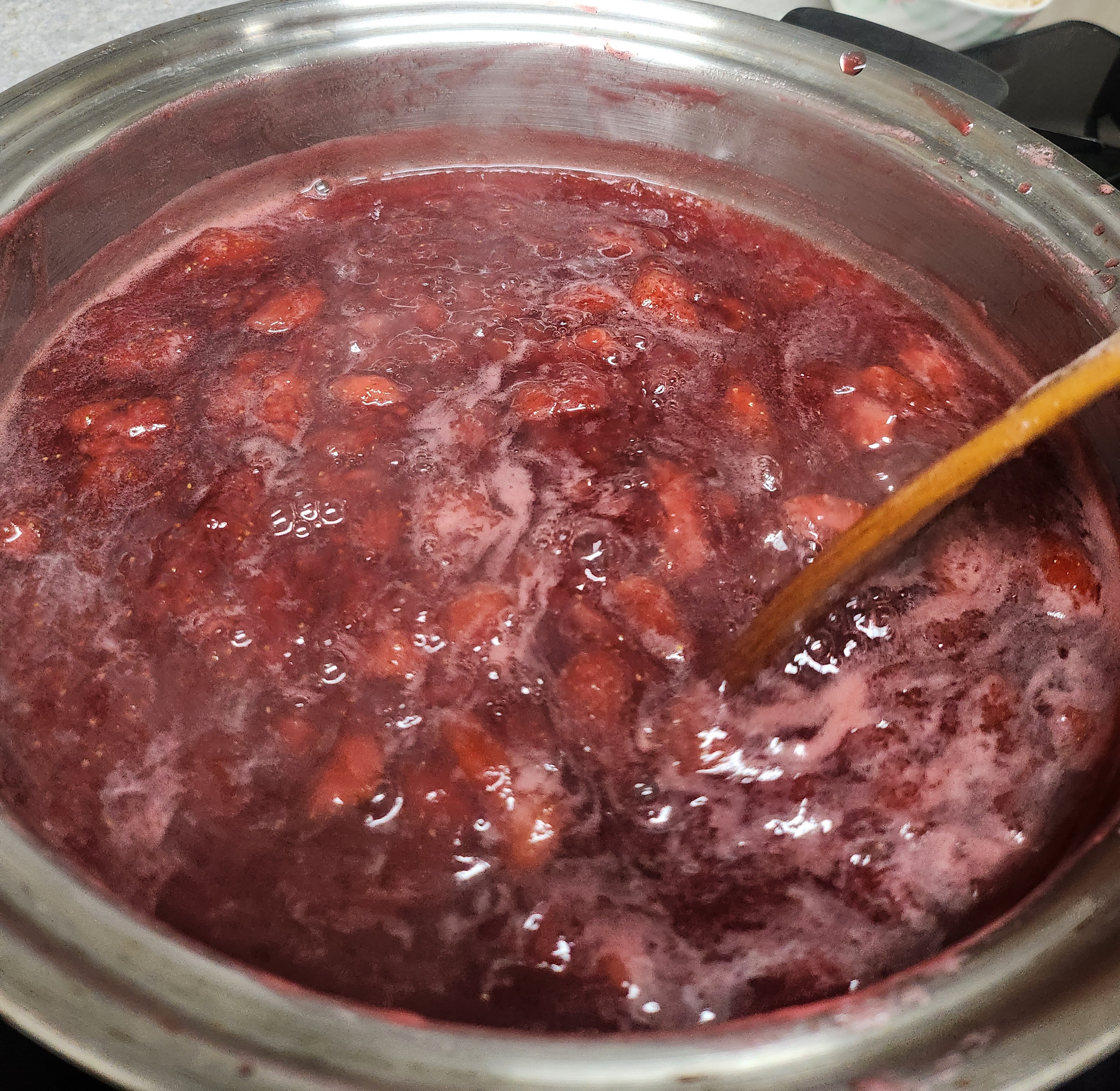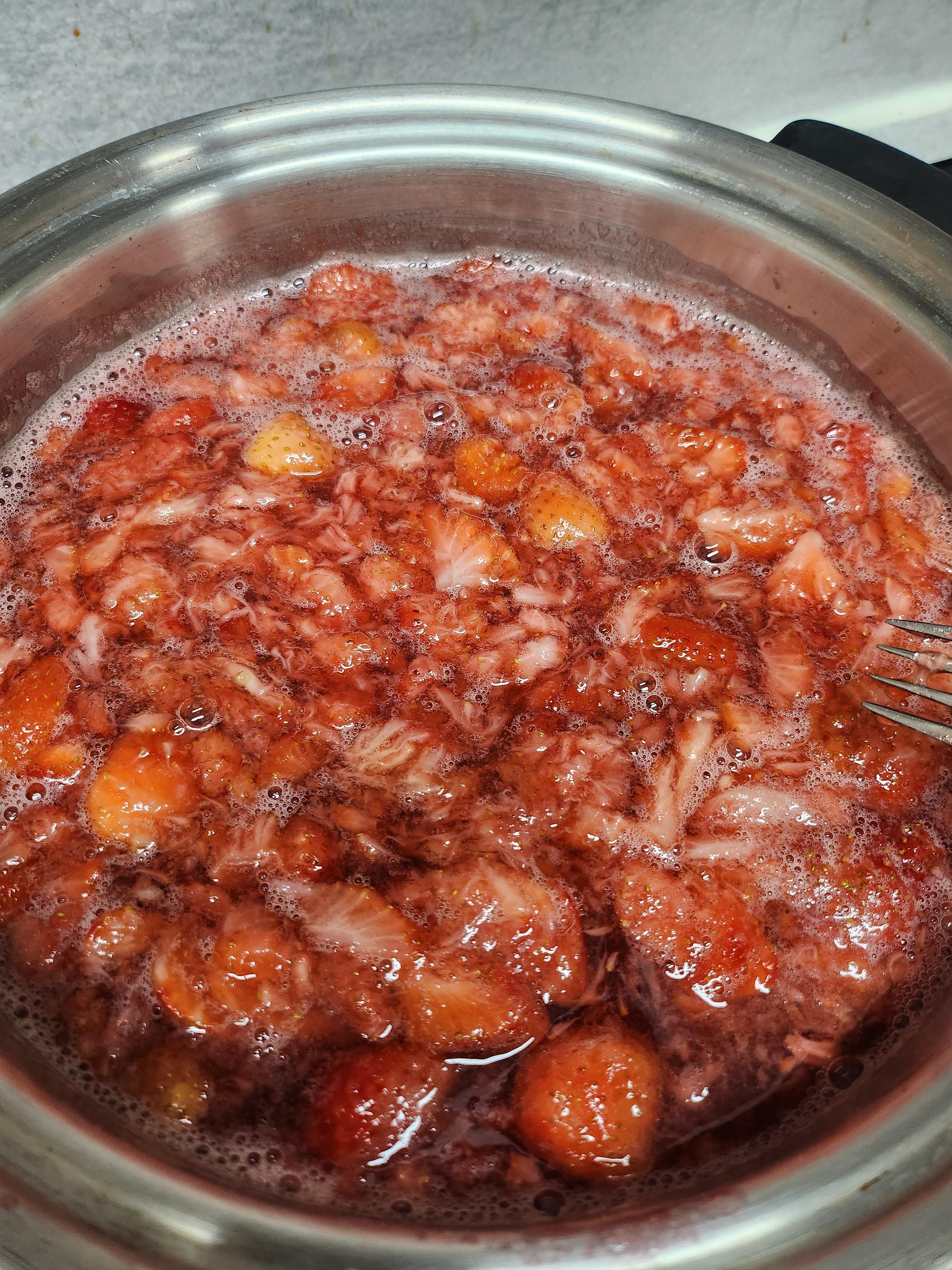 딸기를 너무 많이 사 와서 딸기청을 밀폐용기 한가득하고도 남아서 이 참에 딸기잼도 만들었다.