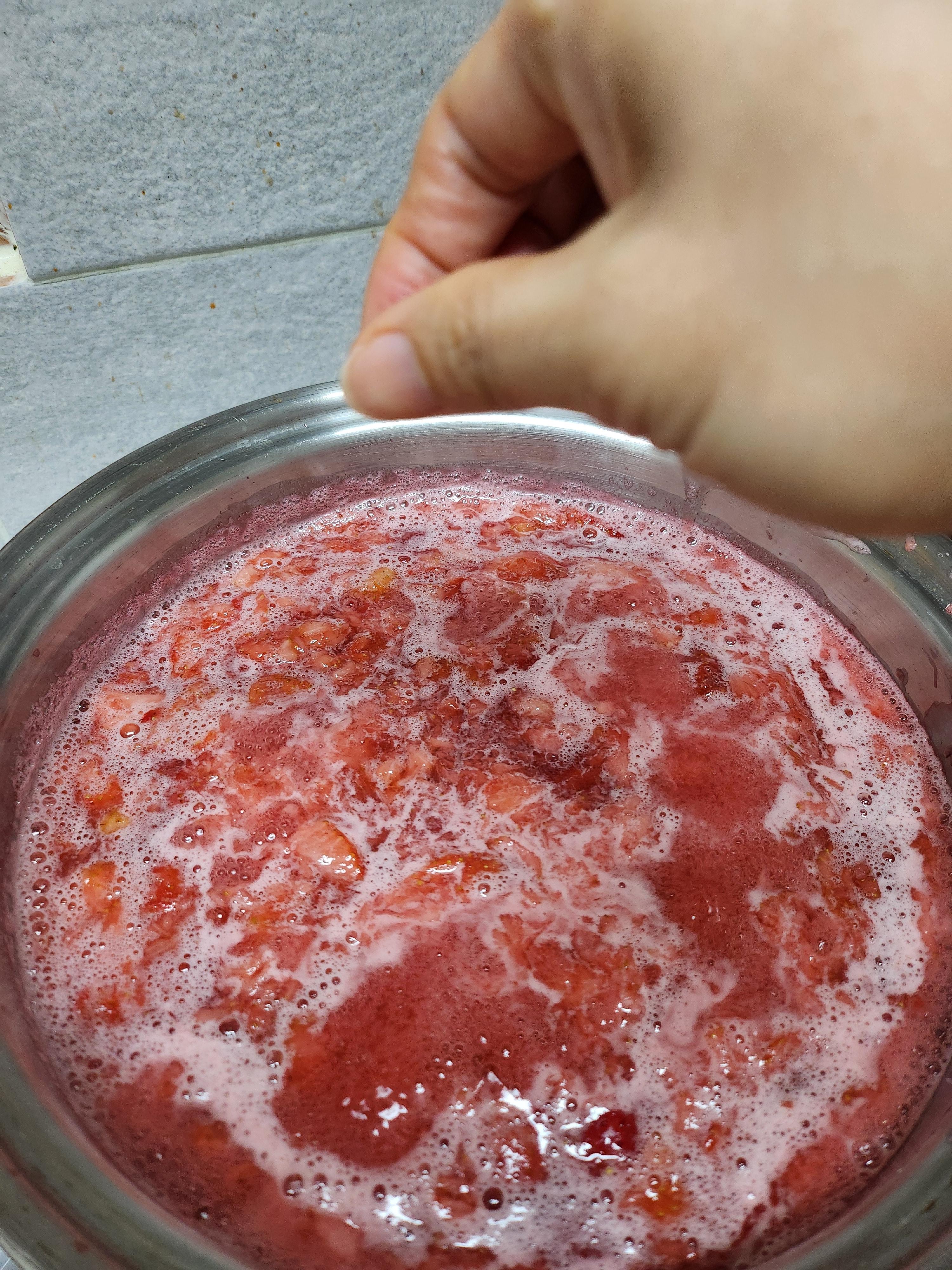 이것도 간편하게 믹서기에 휘리릭 갈아 설탕 섞어서 전자레인지에 돌려서 만드는 방법도 있으나 은근 이상한 고집이 있어서 수제답게 만들어보고 싶어 고생을 자처해 봤다.