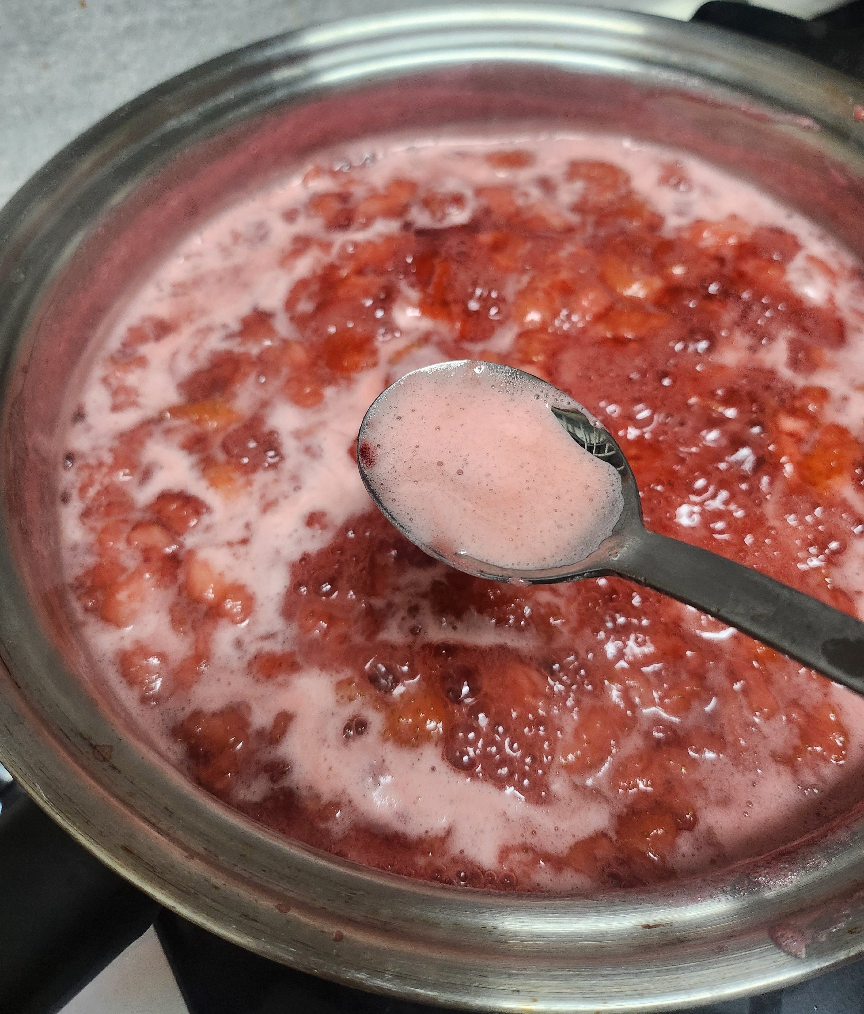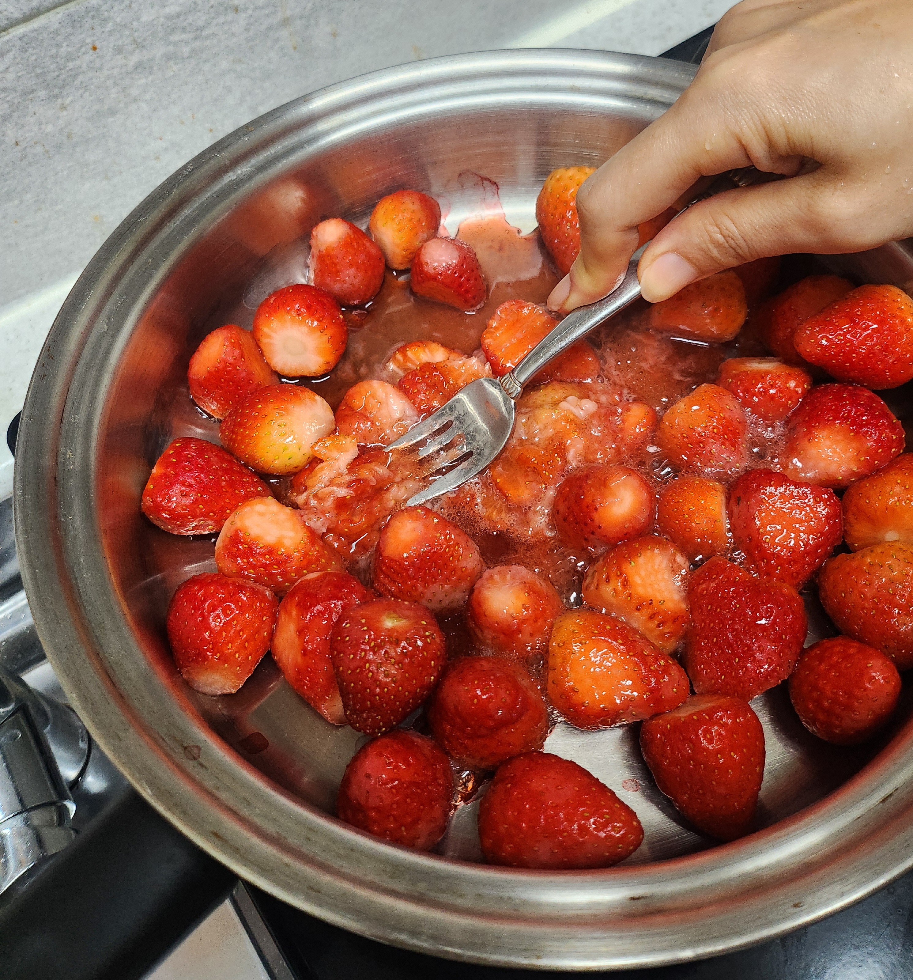 잘 달군 팬에 그냥 딸기를 투하해서 중불에 끓인다.