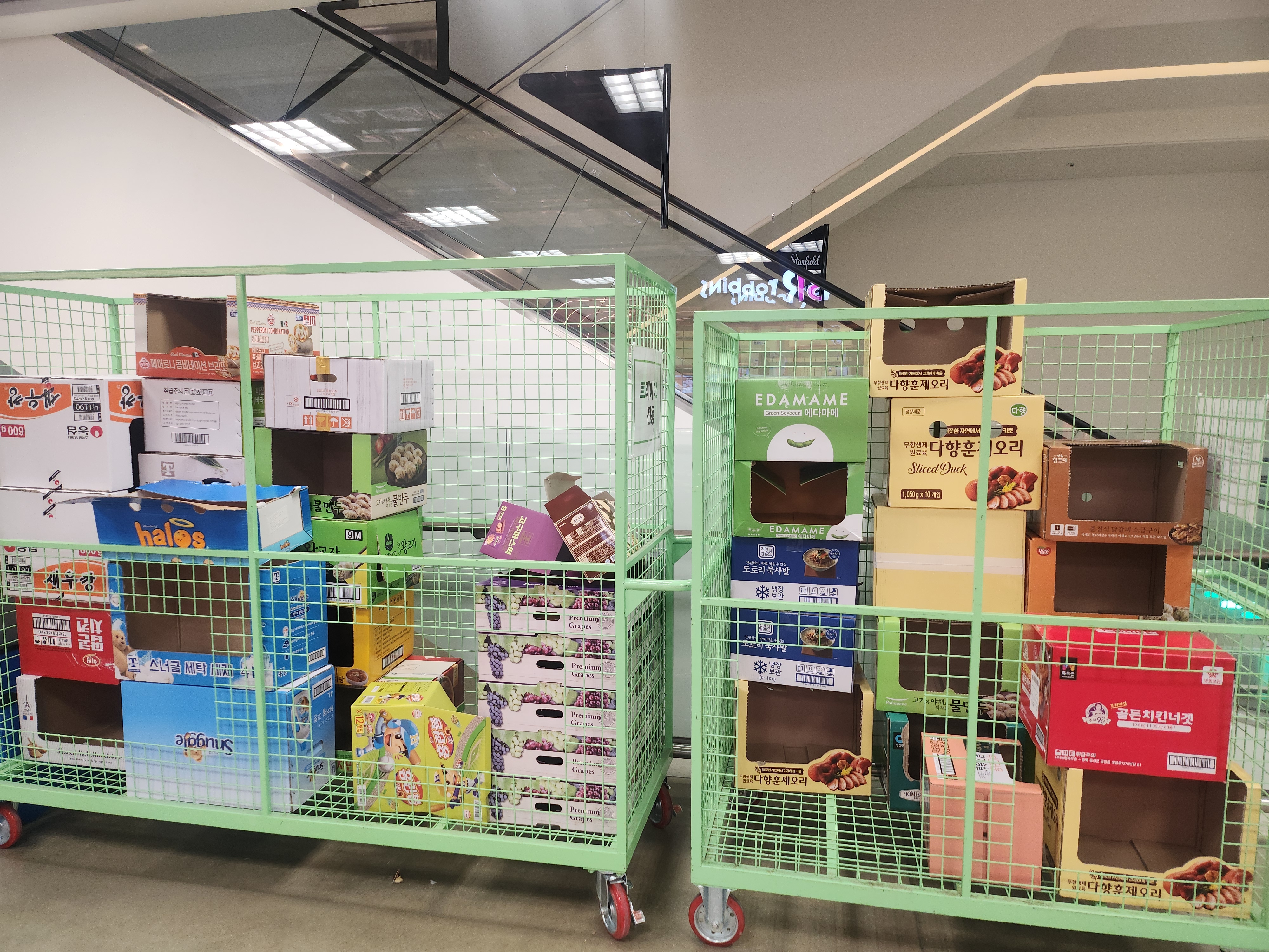 여느 쇼핑몰처럼 쇼핑 후에 담아 갈 빈 박스들도 예쁘게 진열되어 있다.