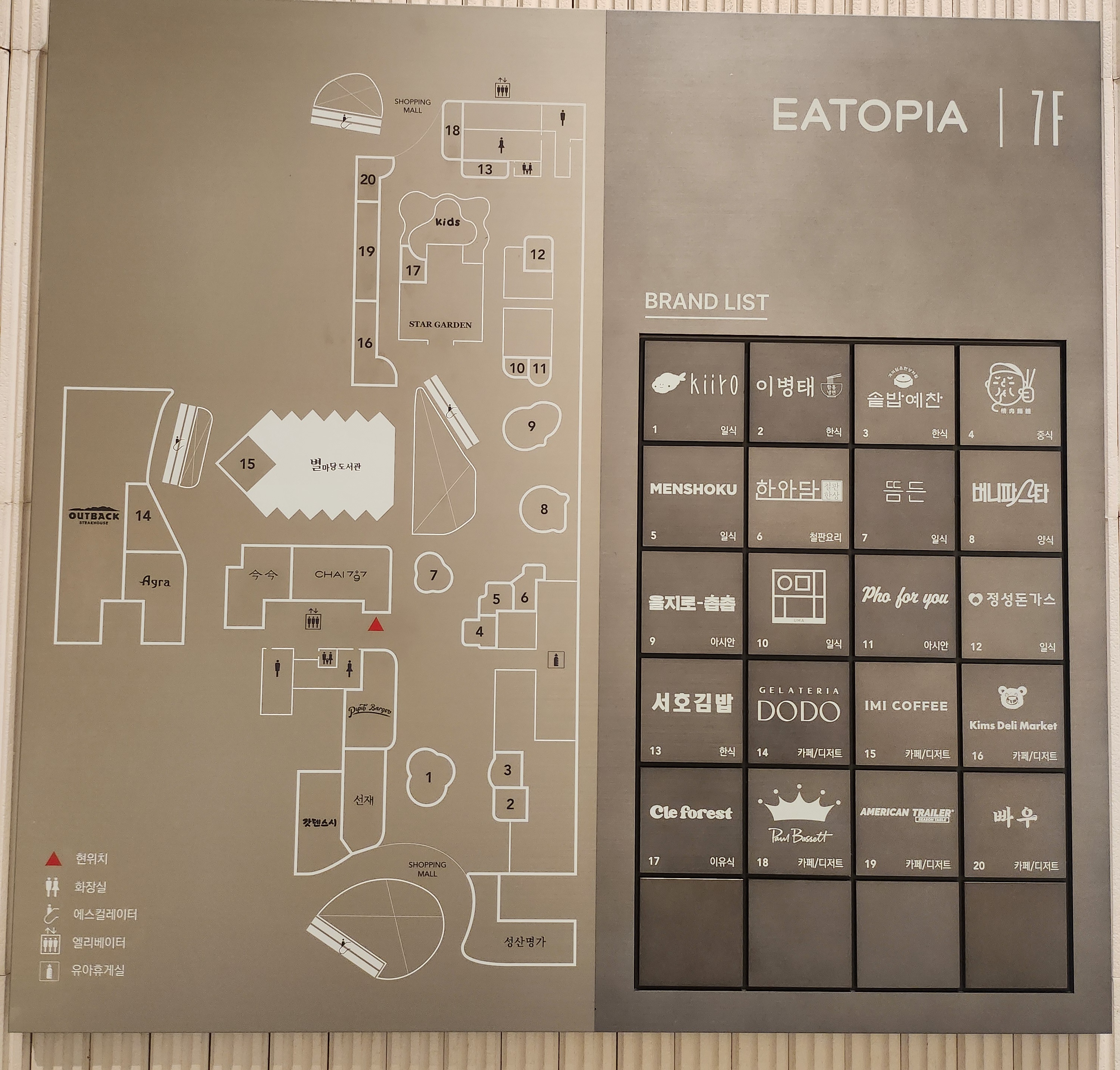 7층 EATOPIA에 갔는데 우린 다른 걸 먹어보고 싶었다.
