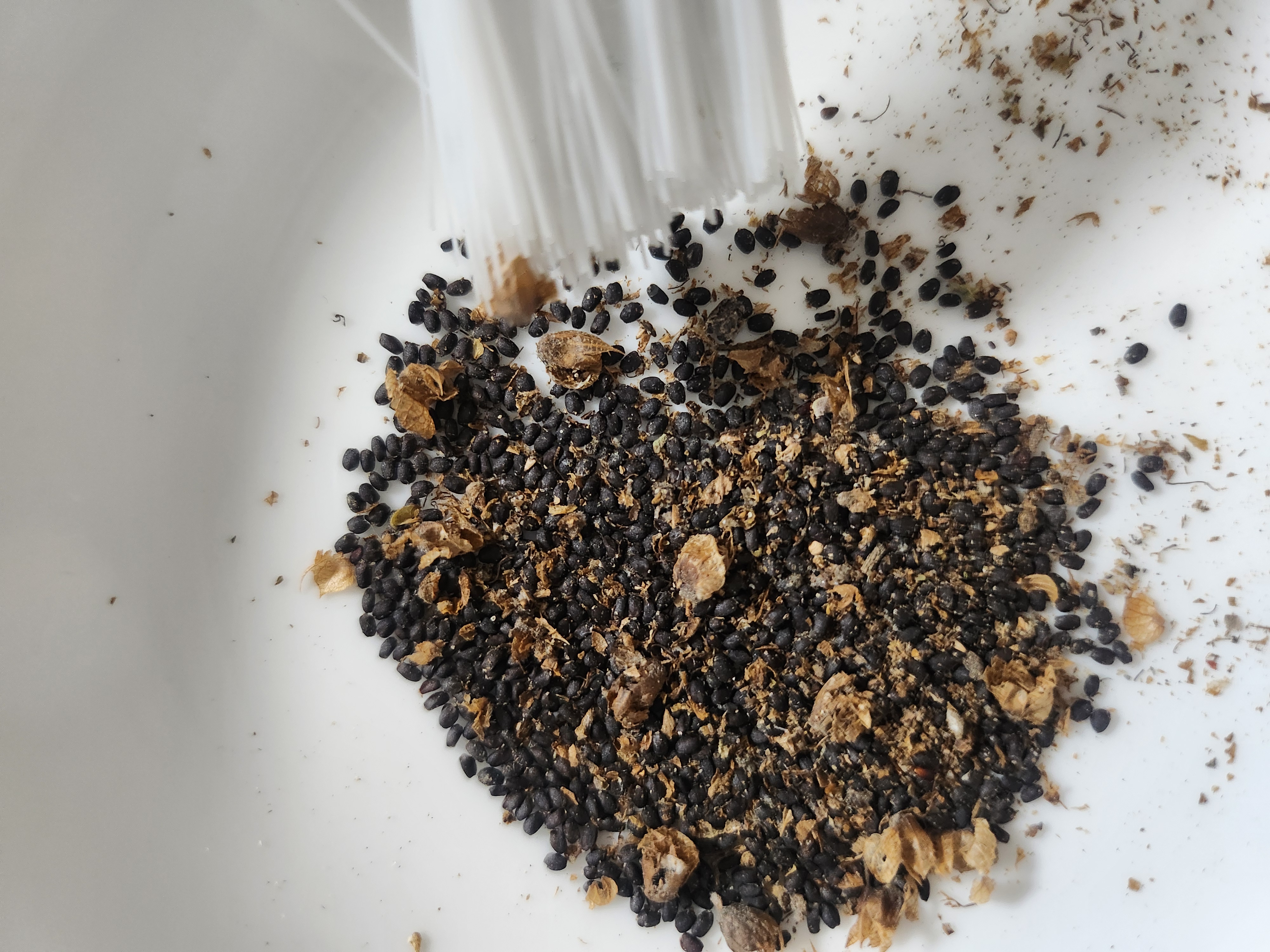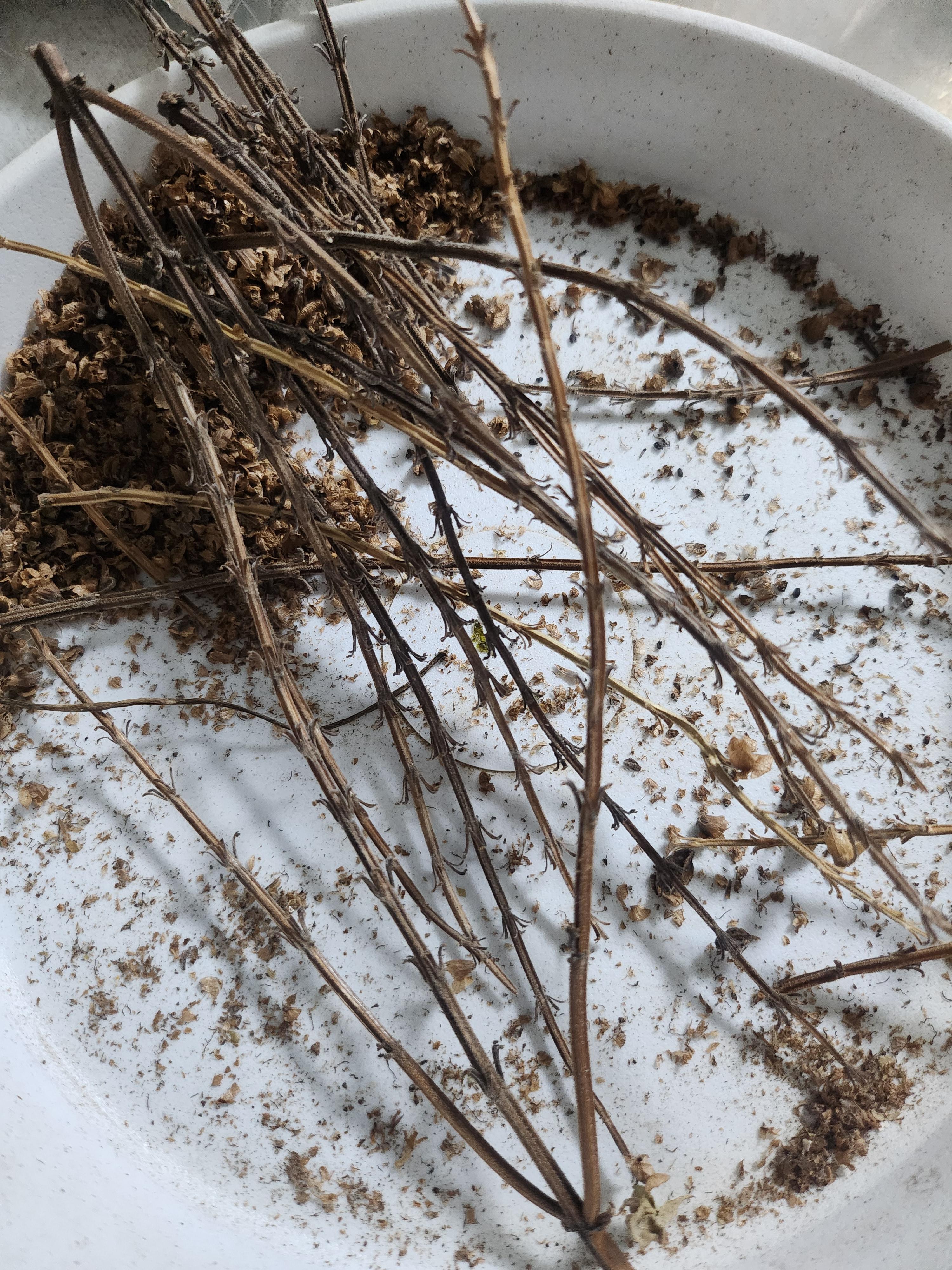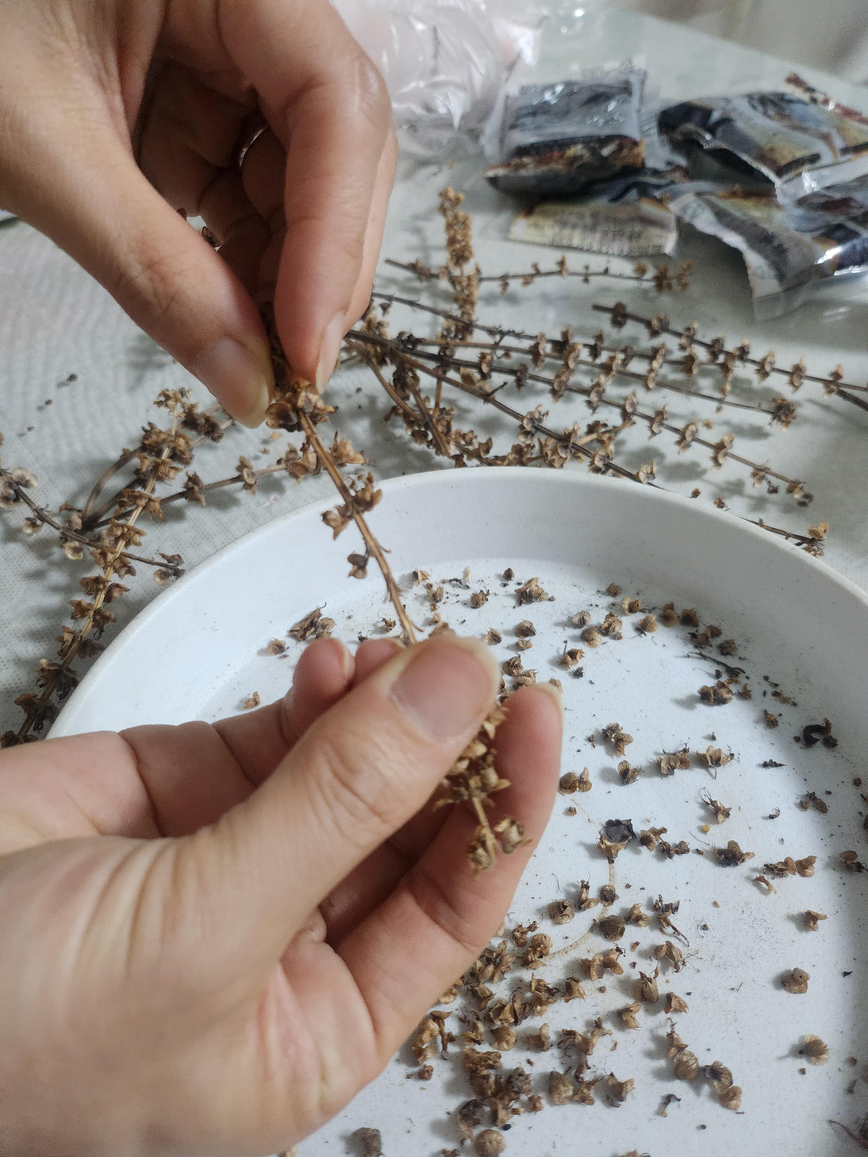 줄기째 잘라서 보관하고 있다가 봄이 되어서야 파종을 위해 씨앗을 수확하려고 꺼냈다.