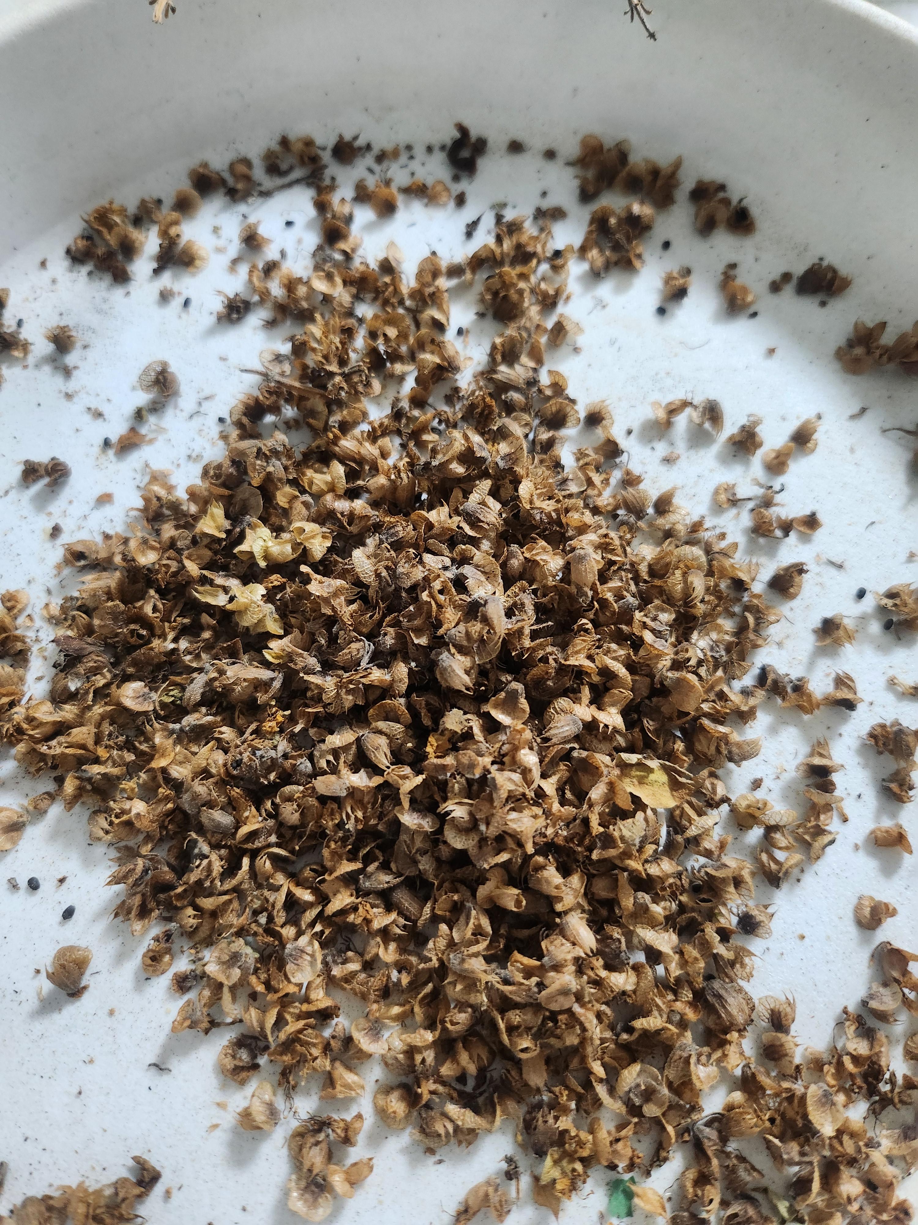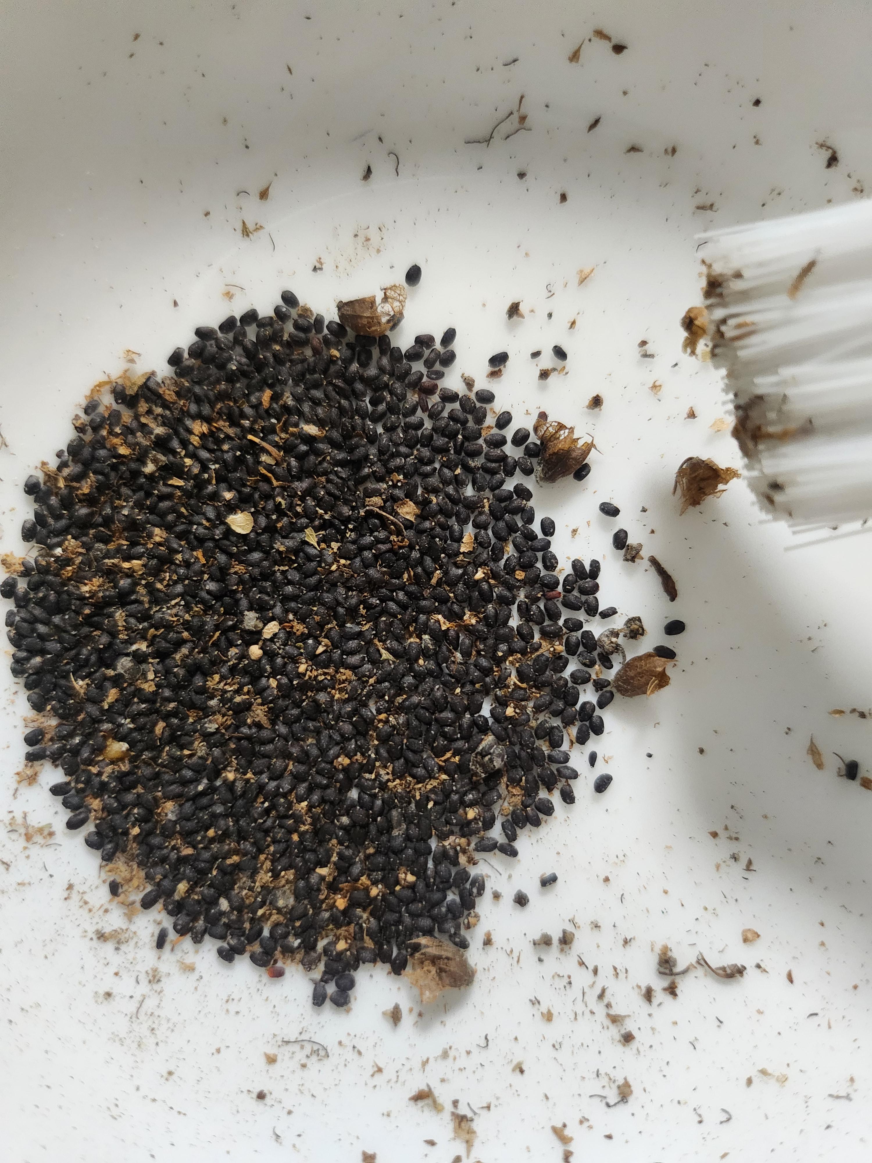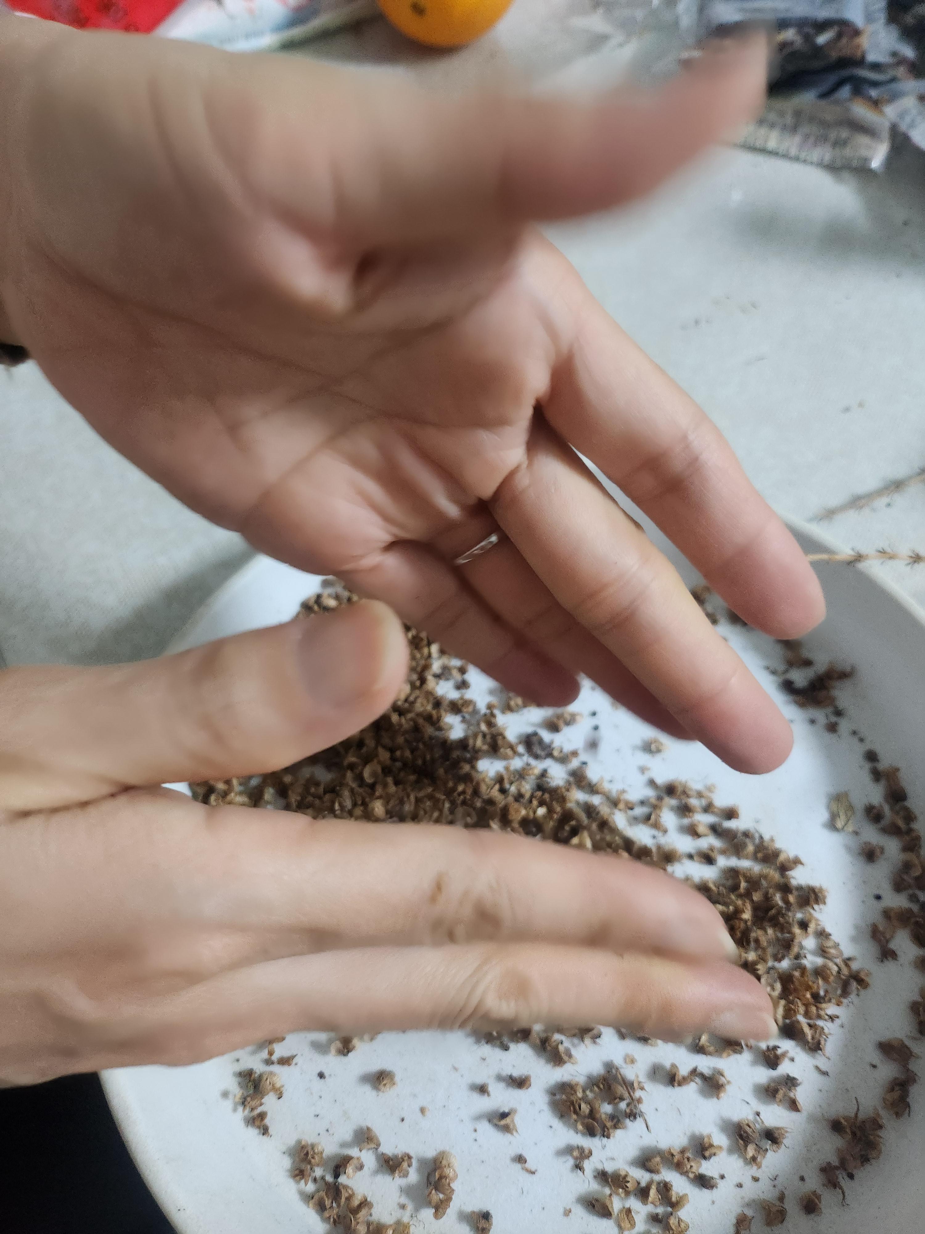 줄기째 잘라서 보관하고 있다가 봄이 되어서야 파종을 위해 씨앗을 수확하려고 꺼냈다.