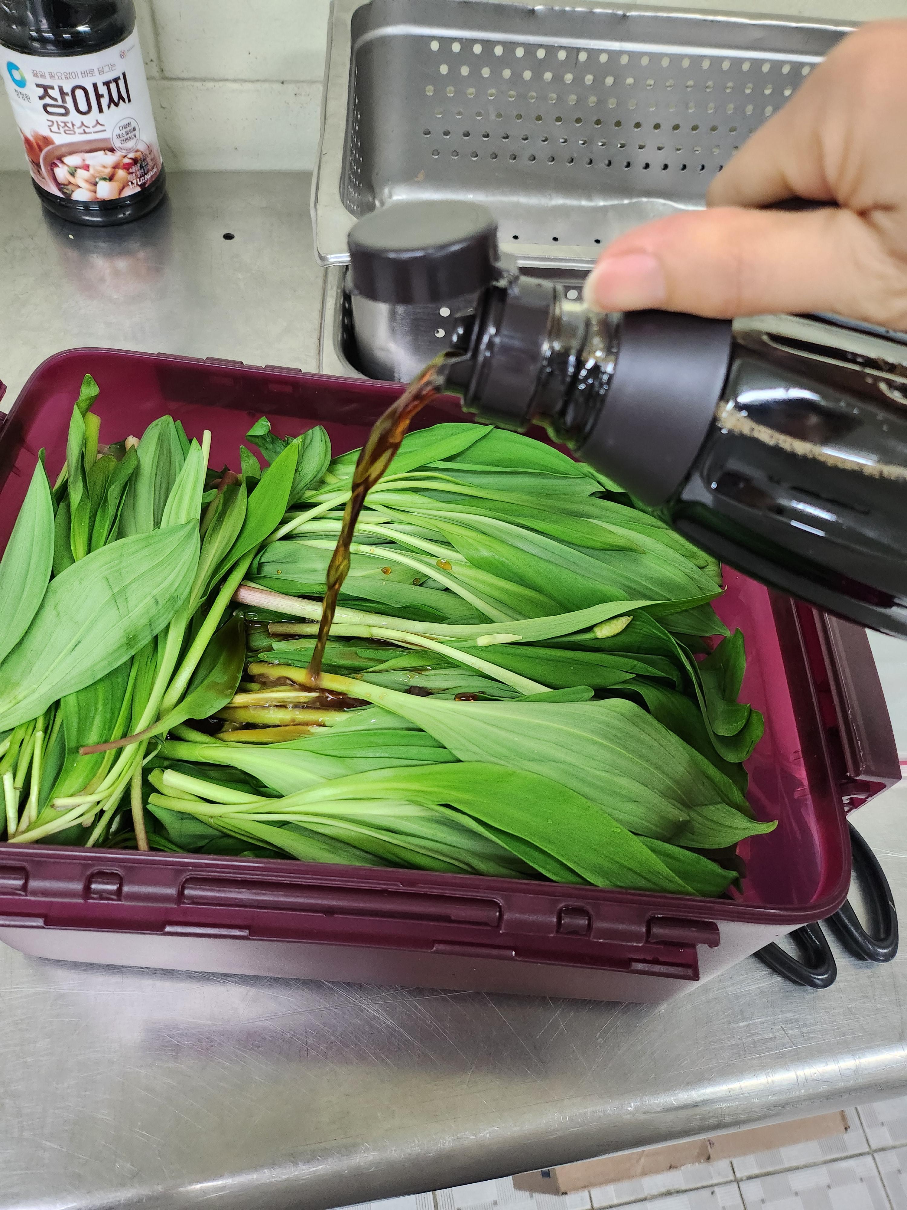 고기나 장어구이 먹을 때 싸 먹는 고급음식인 명이나물이 선물로 들어와서 장아찌를 담았다.