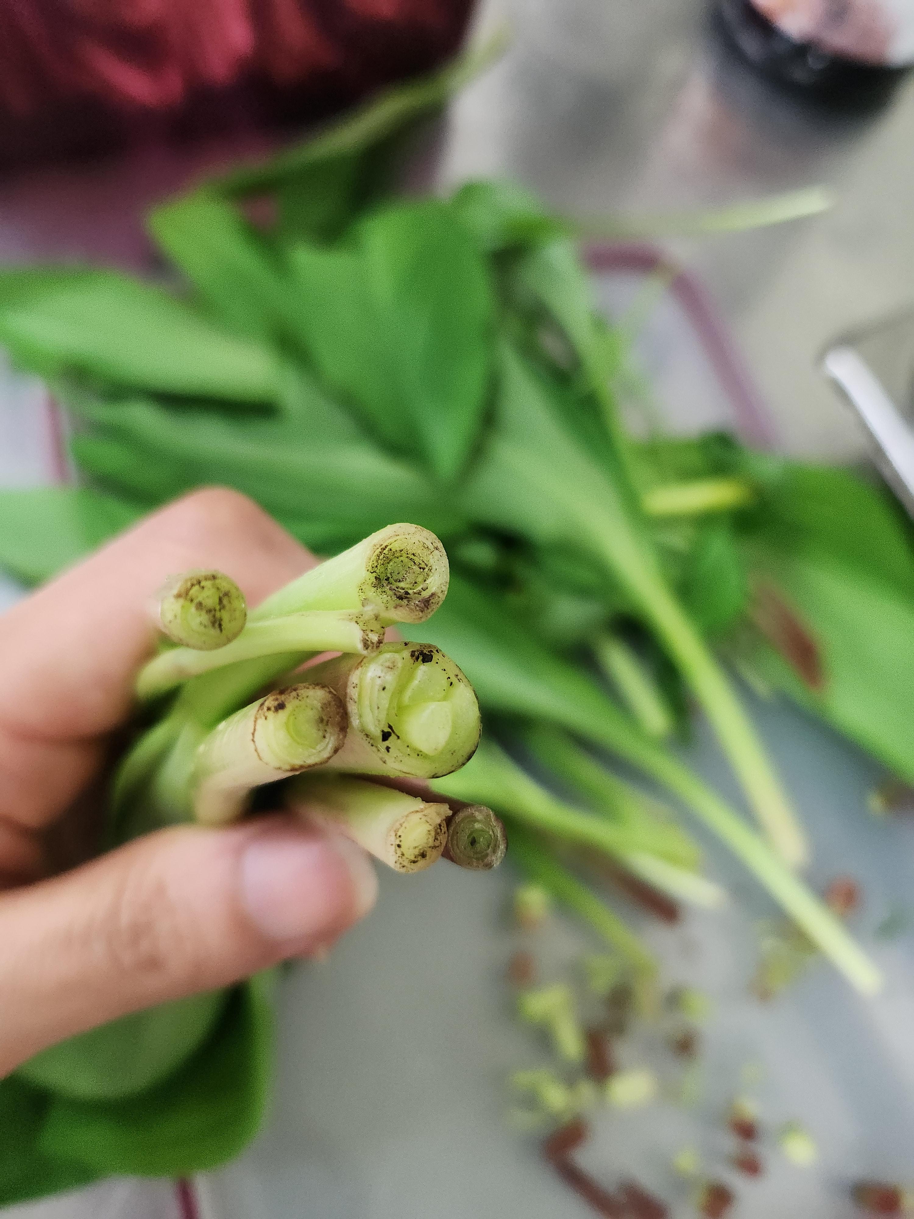 비닐에 담겨있는 명이나물을 꺼내어 큰 볼에 물을 잔뜩 받고 흐르는 물에 씻어야 묻어있는 흙이 잘 제거된다.