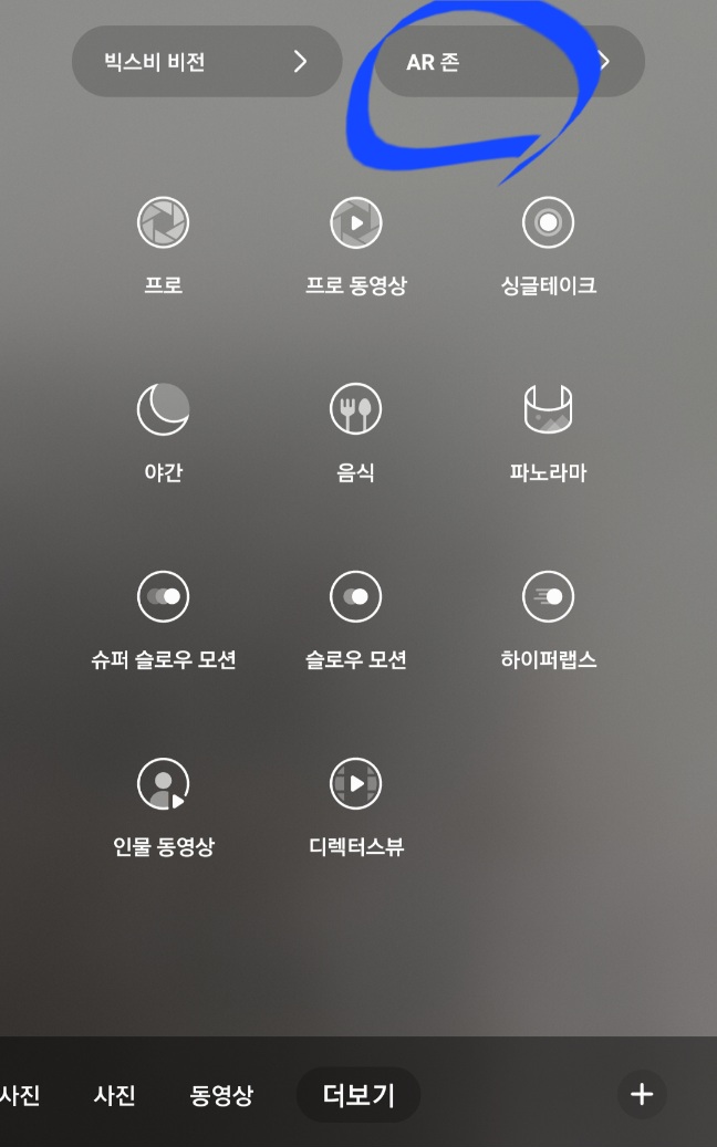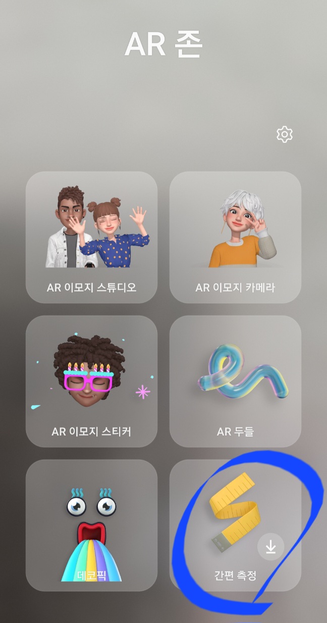 완료되었으면 카메라기능을 실행해서 더보기의 AR존에 간편 측정을 누르면 길이 측정이 가능해진다.